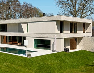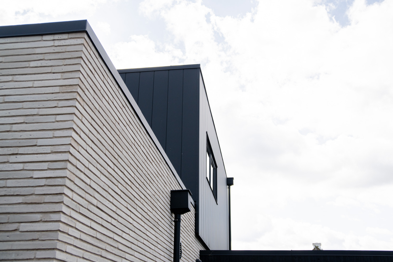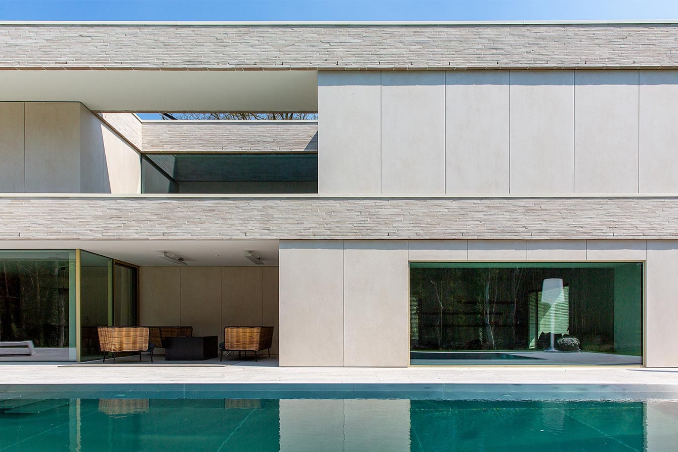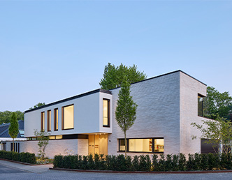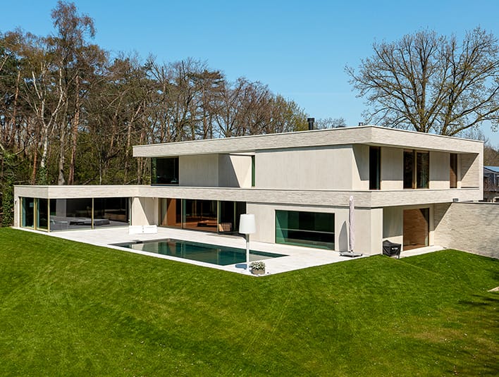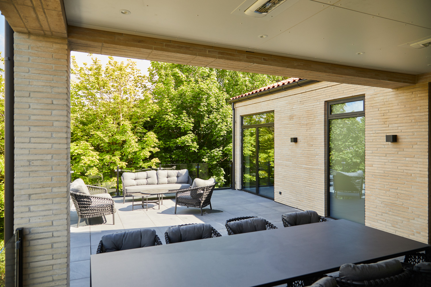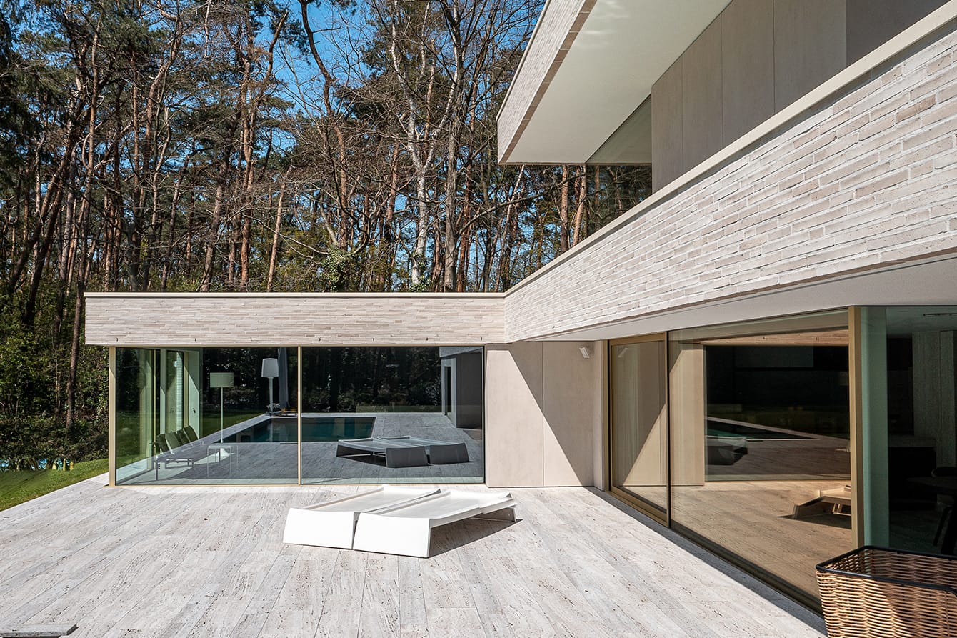This Belgian villa is a bold statement of white vibes, that truly embodies the concept of a million shades of white. Armed with Ultima bricks in full white, the architect has created relaxing spaces below brick overhangs, luxurious blends of black and white and brick flooring.