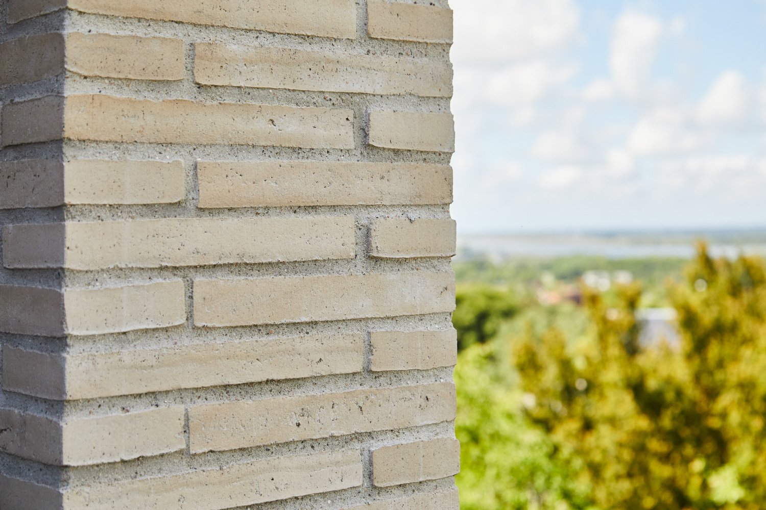 The architect has chosen Unika RT 542 to frame the project. The sand-colored bricks are rich in details and nuances which gives the brickwork an exciting color play and room for endless reflection.