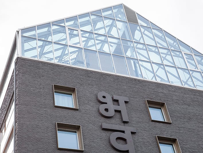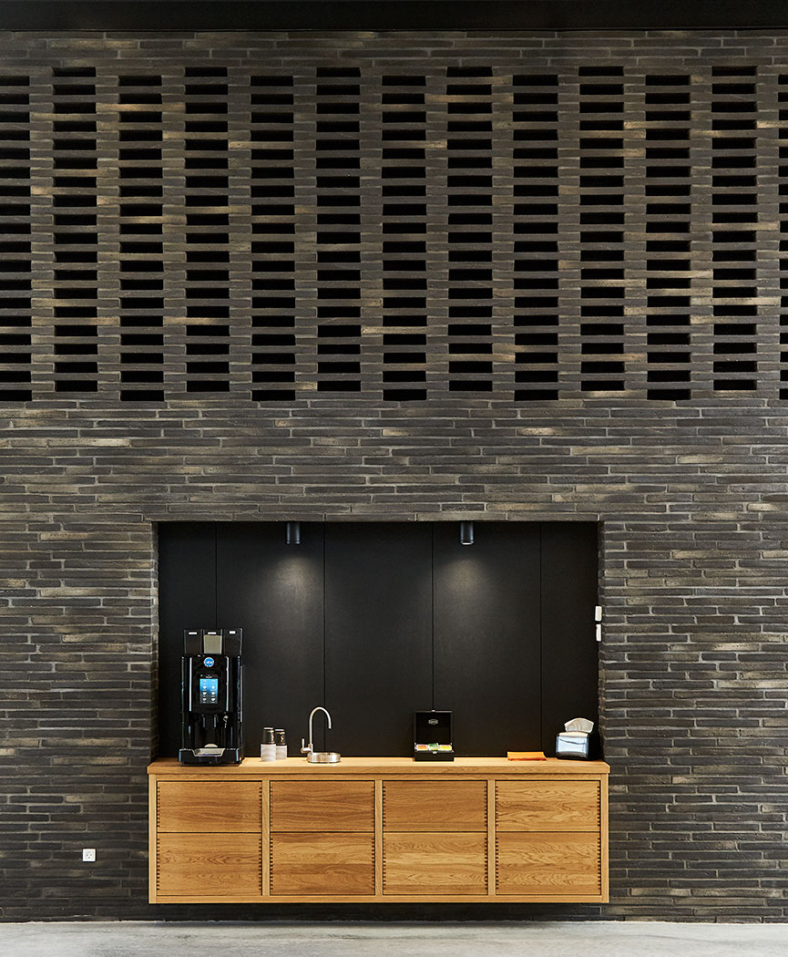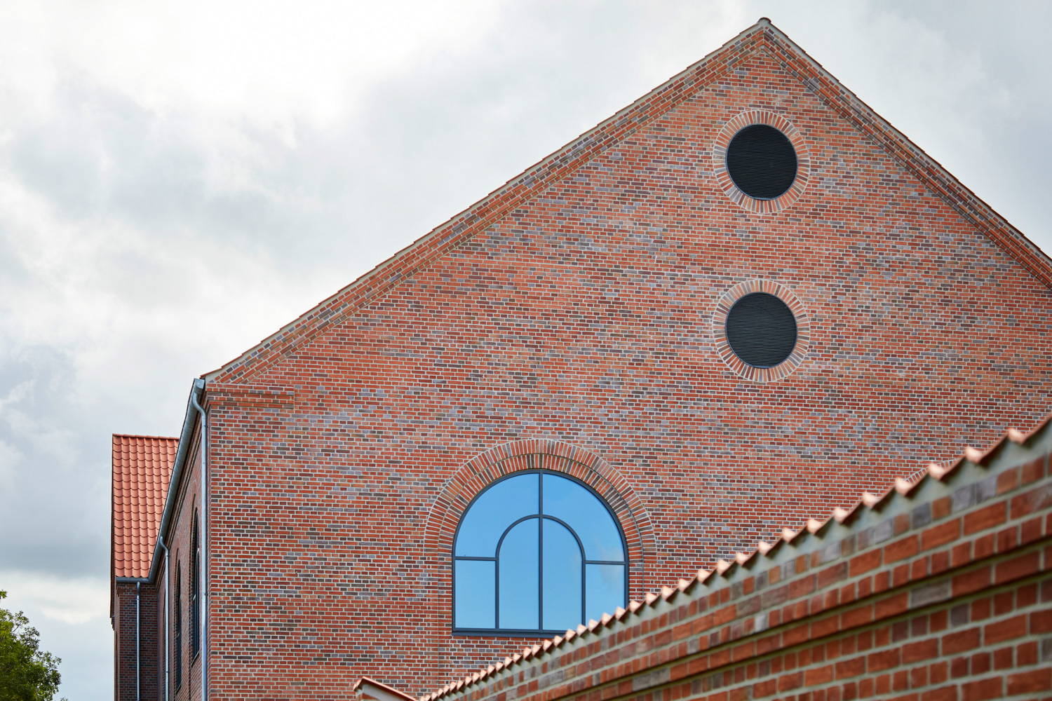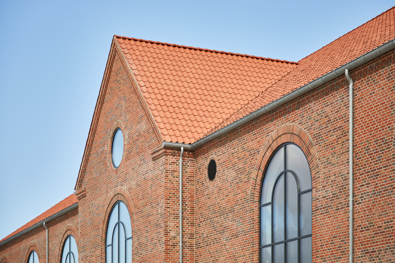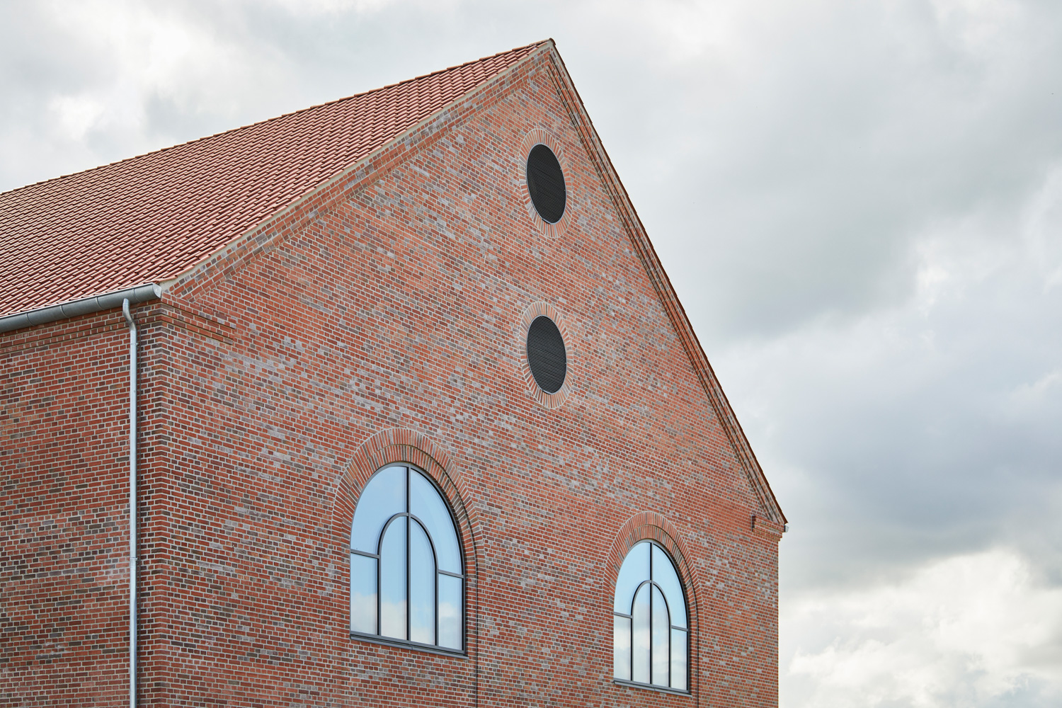 The gable is allowed by a transparent bond of RT 207 bricks, a special Carlsberg Bjælker system for support and traditional brick consoles. From the outside, it is a tale of beautiful simplicity – on the inside, the bond lets great minds work with a view.