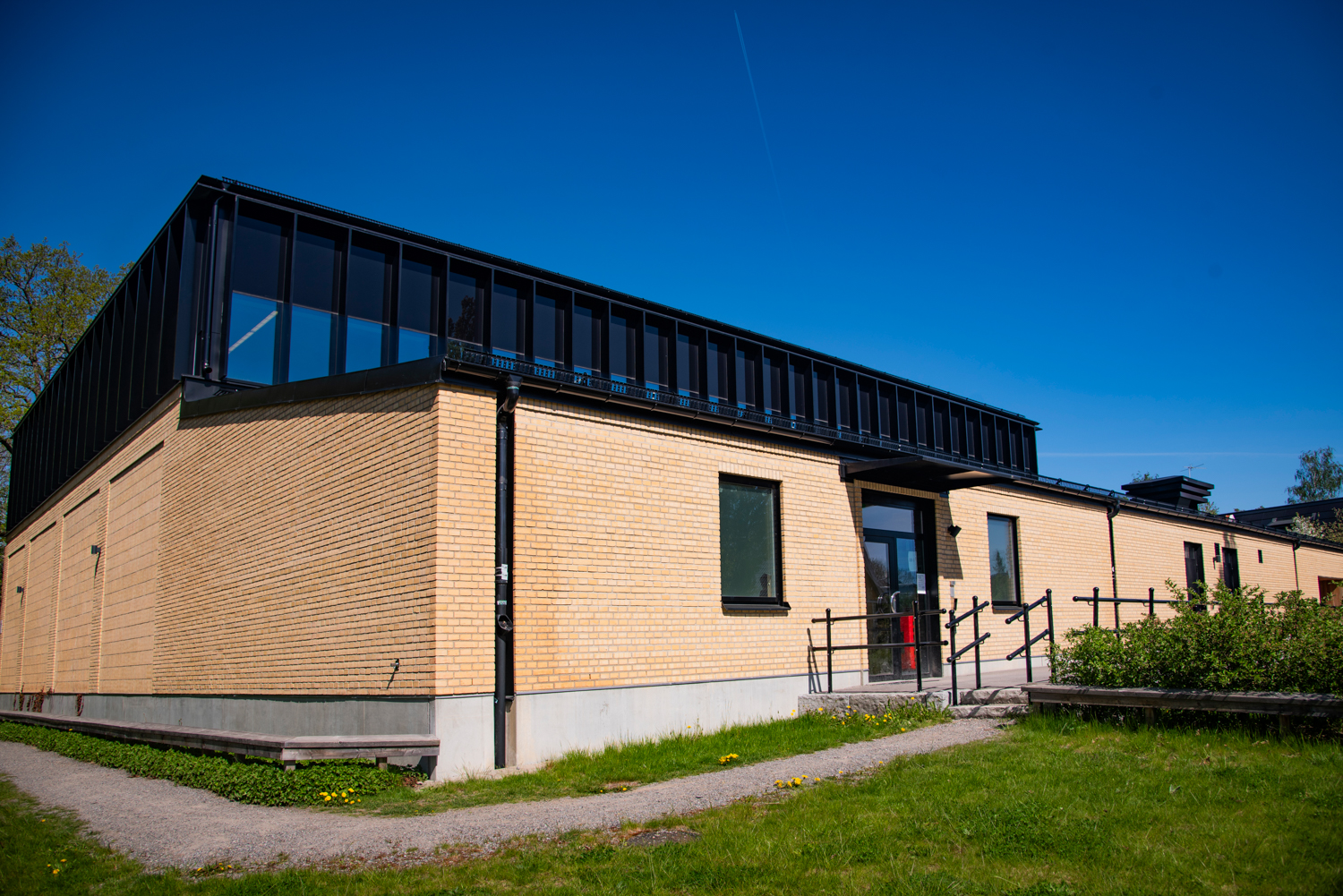 Hanteringen av den stora byggnadsvolymen var utmanande på grund av den lilla tomten och omgivningens småskalighet. För att anpassa skalan mot gatan och de omkringliggande villorna gestaltades byggnaden i flera mindre volymer. Byggnaden präglas av en tydlig ordning och en enkel planlösning. För att få så stora idrottssalar som möjligt saknas korridorer och varje funktion har en egen entré utifrån.