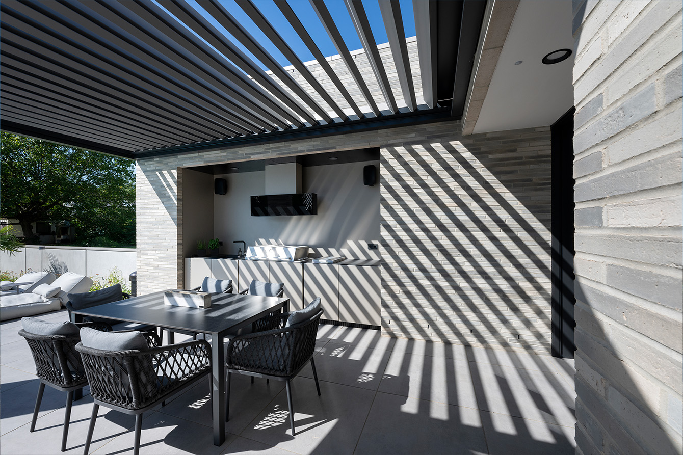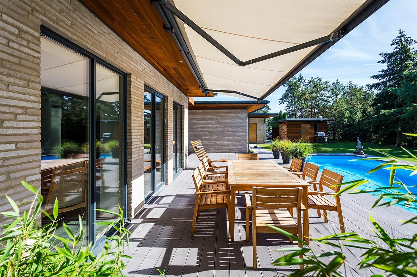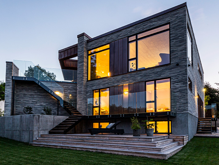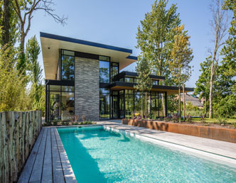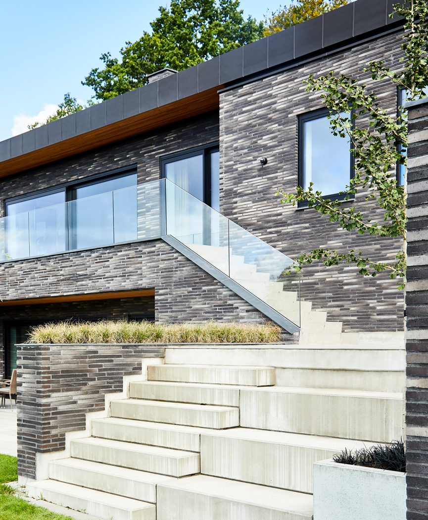 With its location in the woods, the dark-tinted quality materials and a floor plan that sparks curiosity, this Canadian villa is a home out of the ordinary. The Ultima RT 161 plays a distinguished part in the project. The waterstruck black and brown nuances with warm bronzed highlights are the perfect complement to the surrounding nature as well as the simple and elegant interior design.