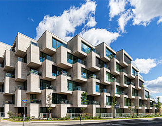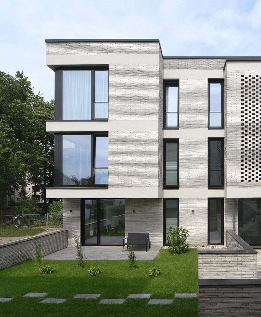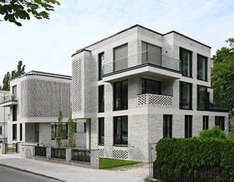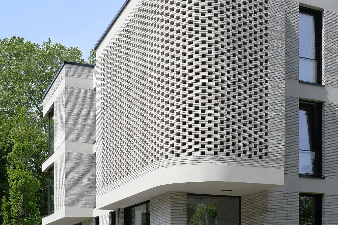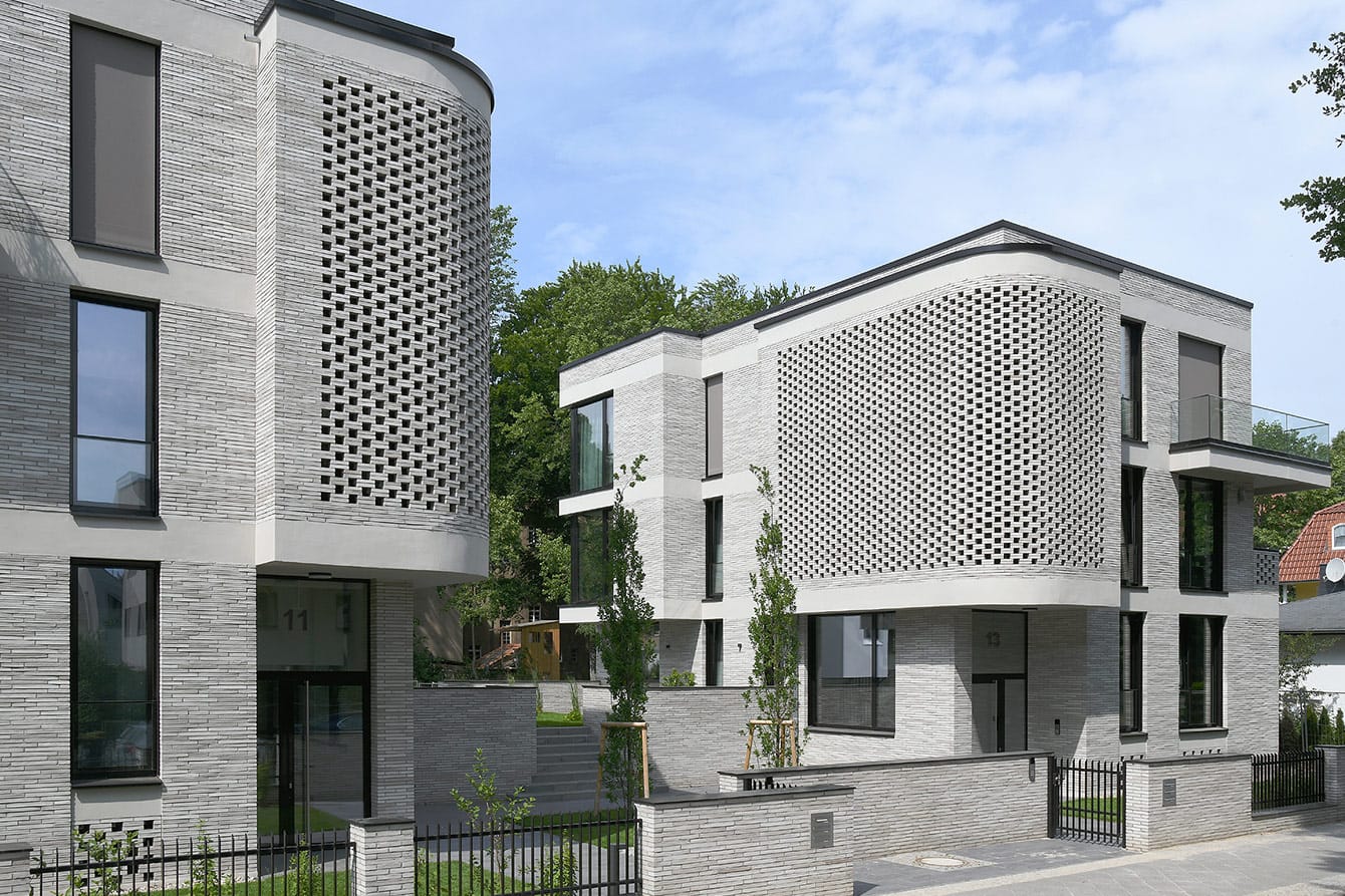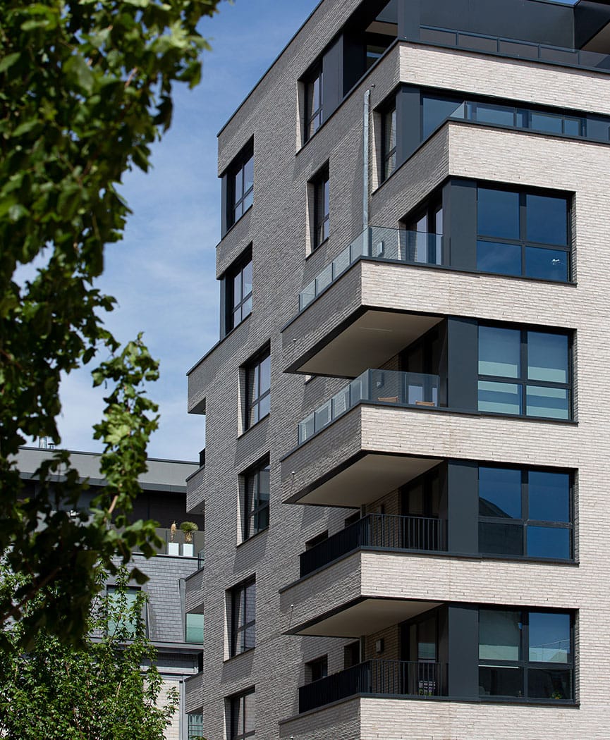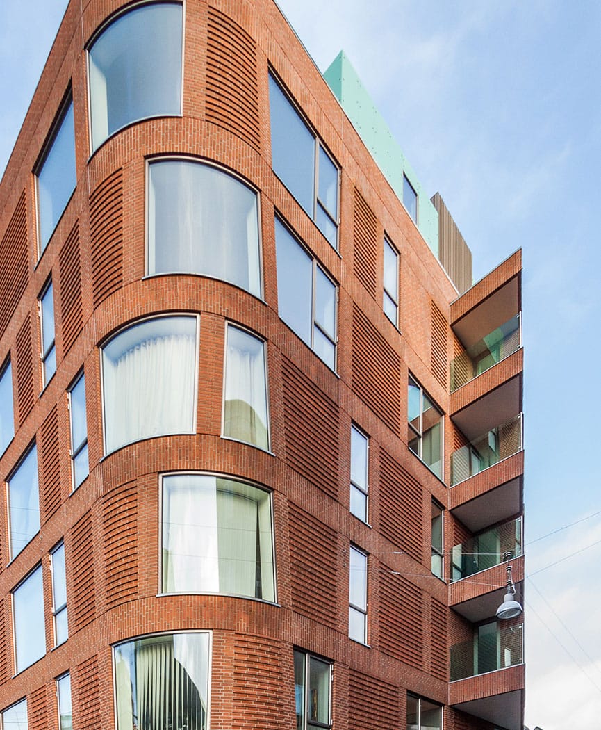 These private residences in Berlin have an elegant way of inviting you in. From the green and gray brick-sectioned courtyard to the iconic curved breeze blocks, that sculp the masterpiece for this remarkable façade. The graceful arch of Ultima bricks creates a truly dramatic expression. Vertical black windows accompanied by gray concrete ribbons give the brickwork an edge of elegance. A superb display of genuine German craftsmanship.