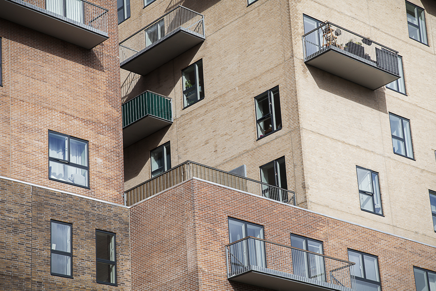 För lägenheterna med sämre läge till väderstreck har man använt vinkelställda burspårk och generösa balkonger för att ge goda förutsättningar till utblick och eftermiddagssol. ”En medveten gestaltning”, säger Per.