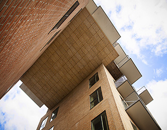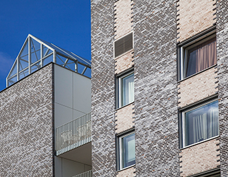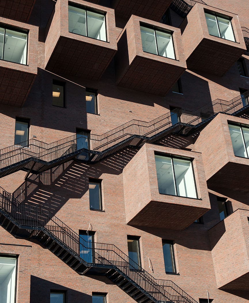 Capitalizing on the Unika brick’s expressive character, these exclusive apartments in Bekkestua, Norway have a special combination of materials. The warmth of the hardwood creates its own unique connection with the coal-burnt variation of bricks. Panoramic roof balconies open up to the light and spectacular views.