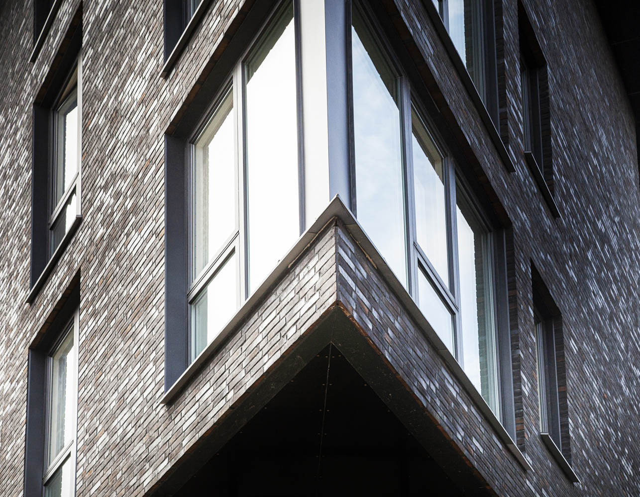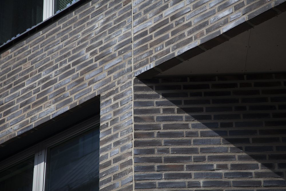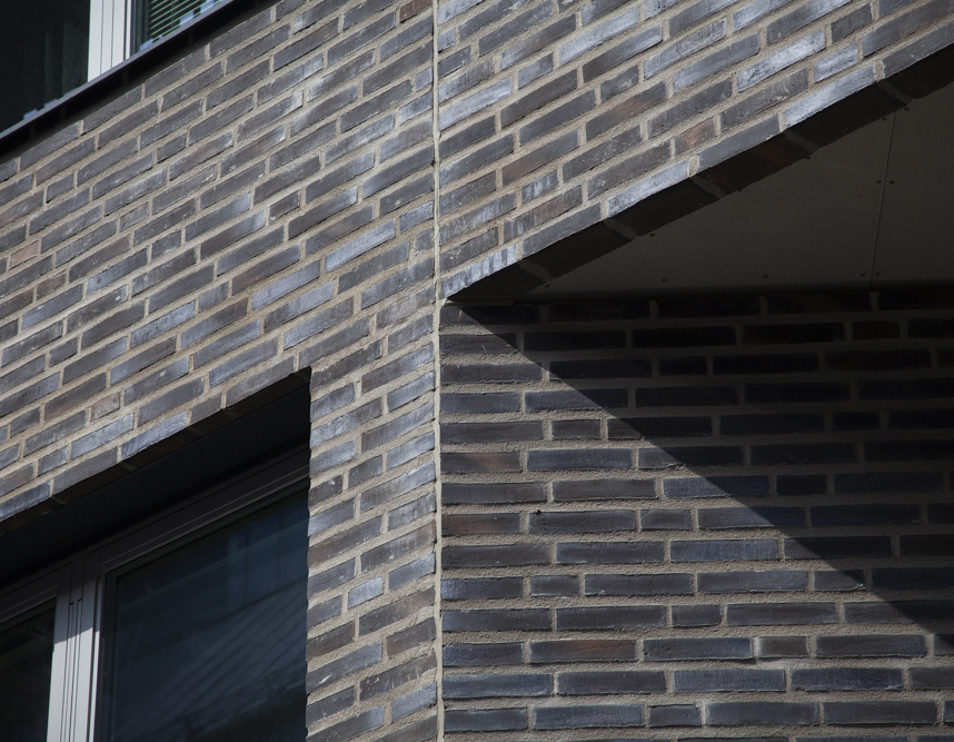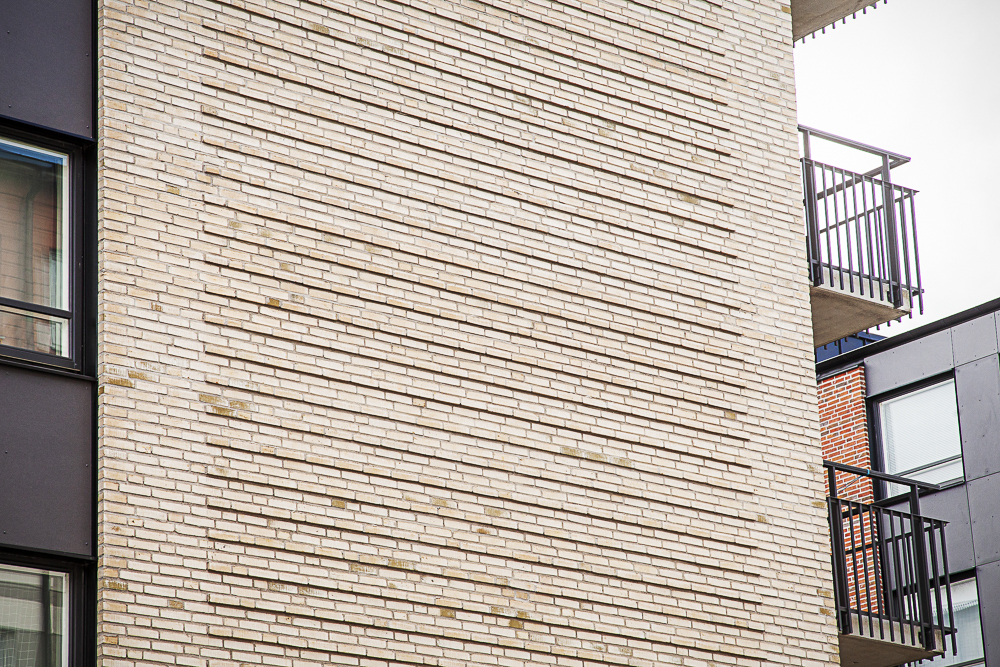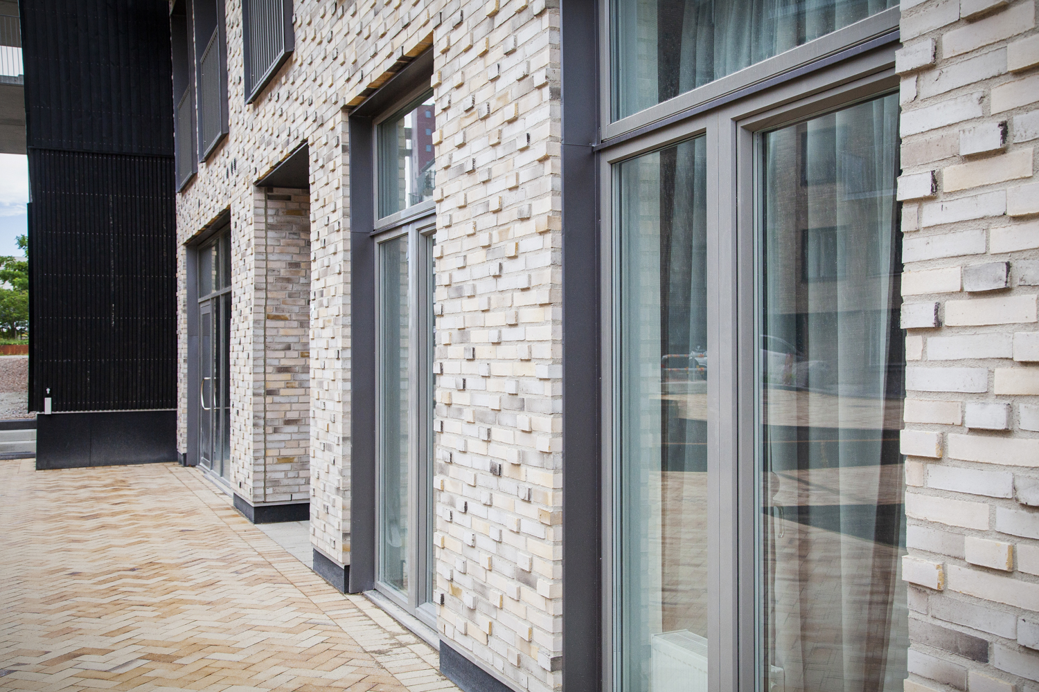 To reinforce the feeling that the house bodies are different individuals who stand for themselves and become personal, we chose different colours on the brick and different colours on the joints. After Randers Tegel delivered many test boards with different bricks and different colours on the joint, the choice finally fell on three joint colours and three types of bricks, RT475-Bari, RT575-Fusion, and RT571-Fusion. We also chose to work with different types of pattern masonry, such as copper in standing joints and cantilevers in the street level of the facades to create an exciting expression in the facades. The colour choice for the windows was also important. Because some windows got a dark colour and others a white colour on the window frames, the personality of the house bodies is further strengthened. To avoid getting a feeling that the houses were moving away from the street, we let the stairs from the apartments to the north go down to the sidewalk. Thanks to this, we connected the street with the houses and achieved a Brooklyn feeling… albeit in Eskilstuna vintage.