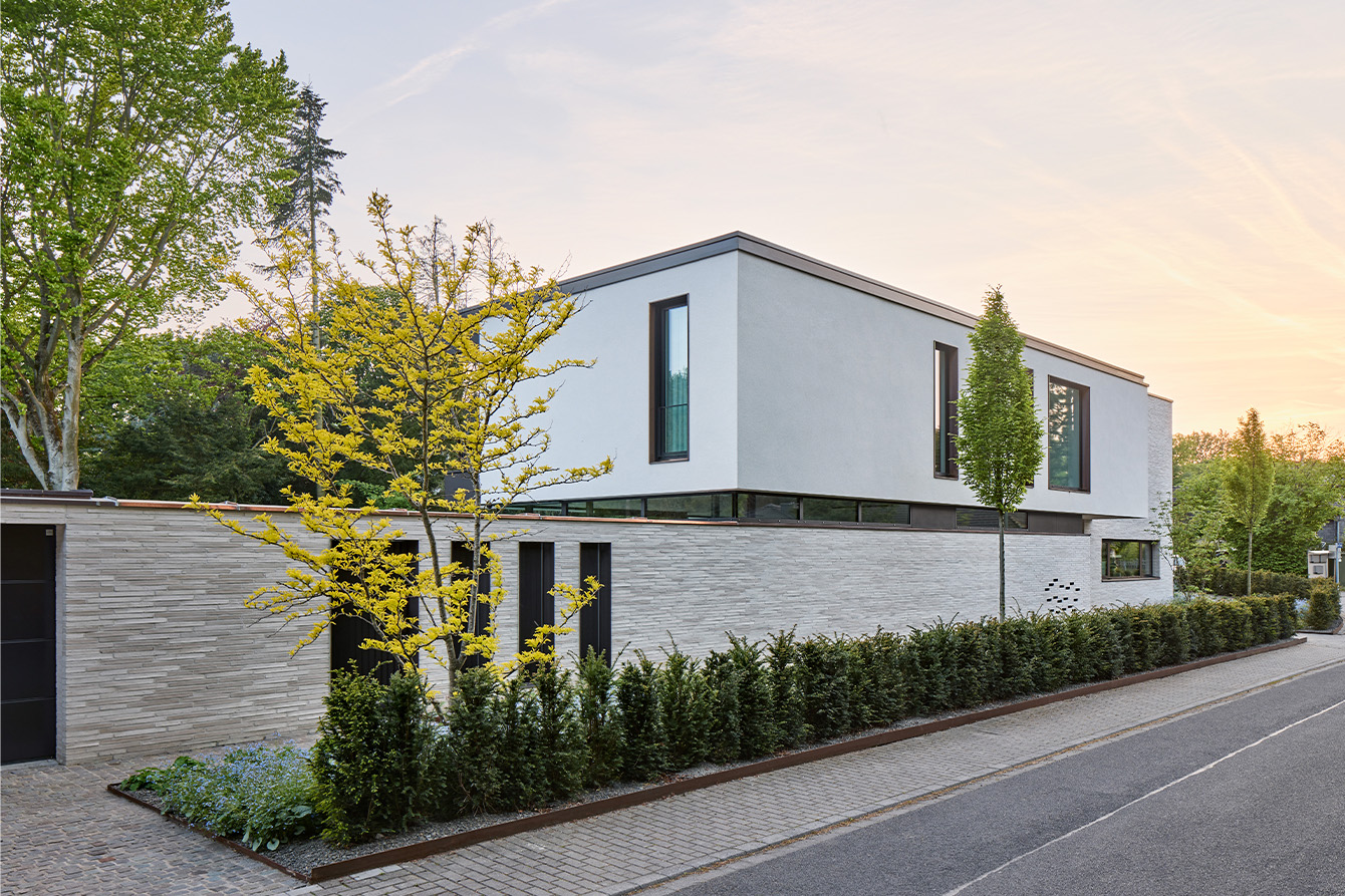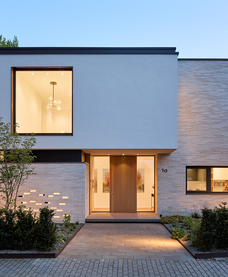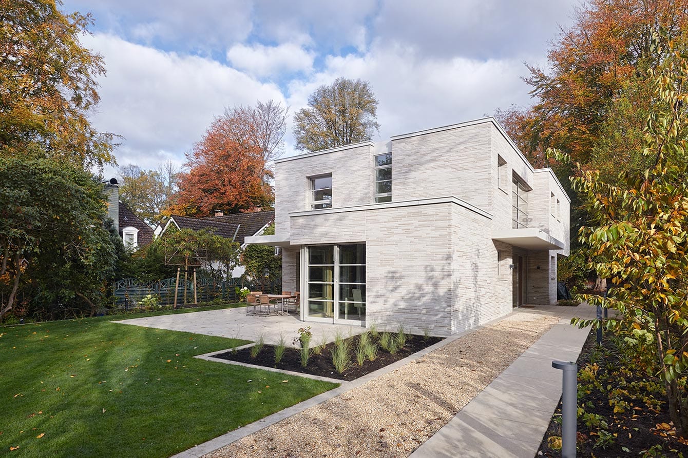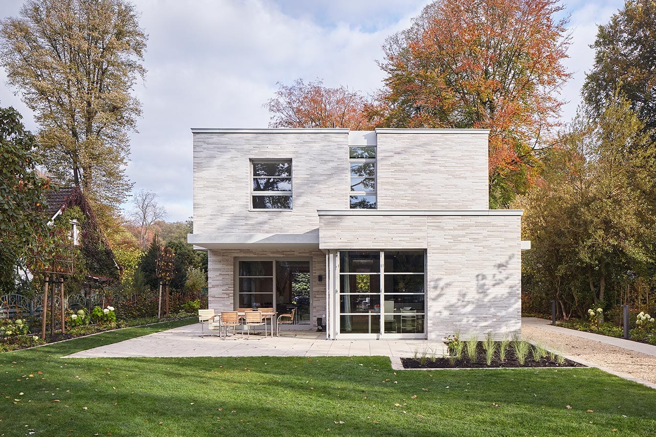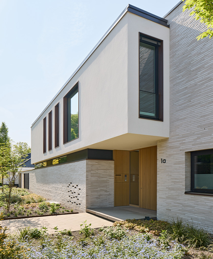At first sight, the facade of this white gem in Germany may look simple. But no detail is coincidental, and bold choices are the result of an exclusive and extraordinary expression that stands out in the residential area.