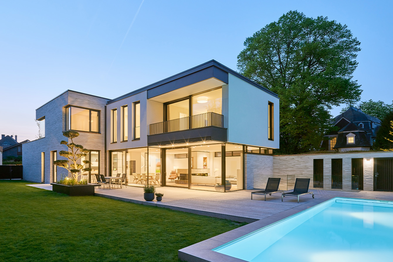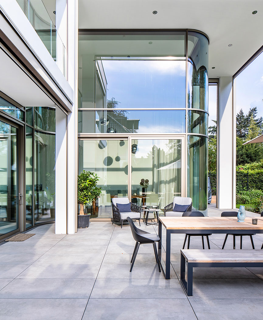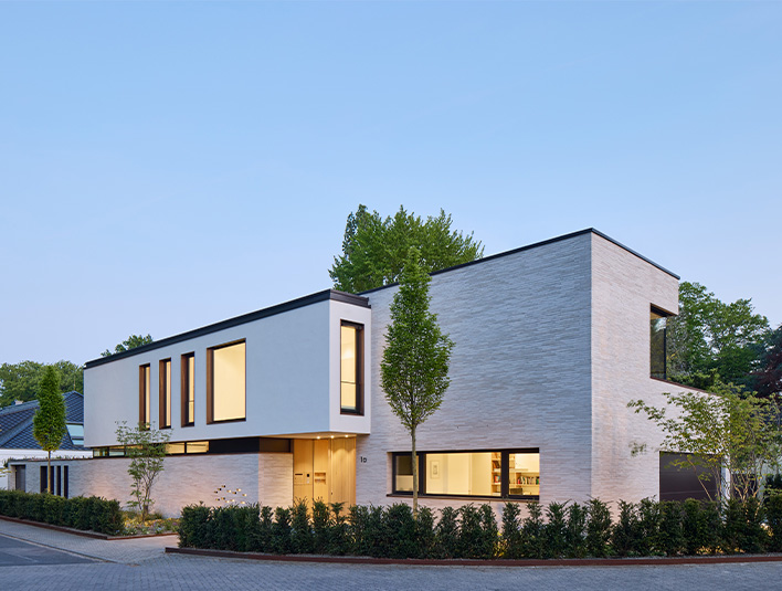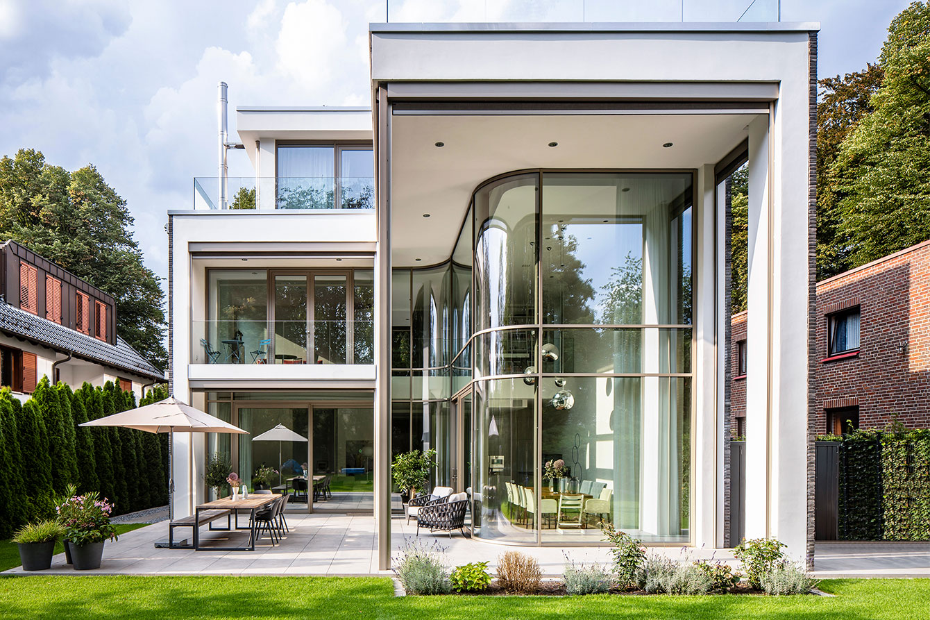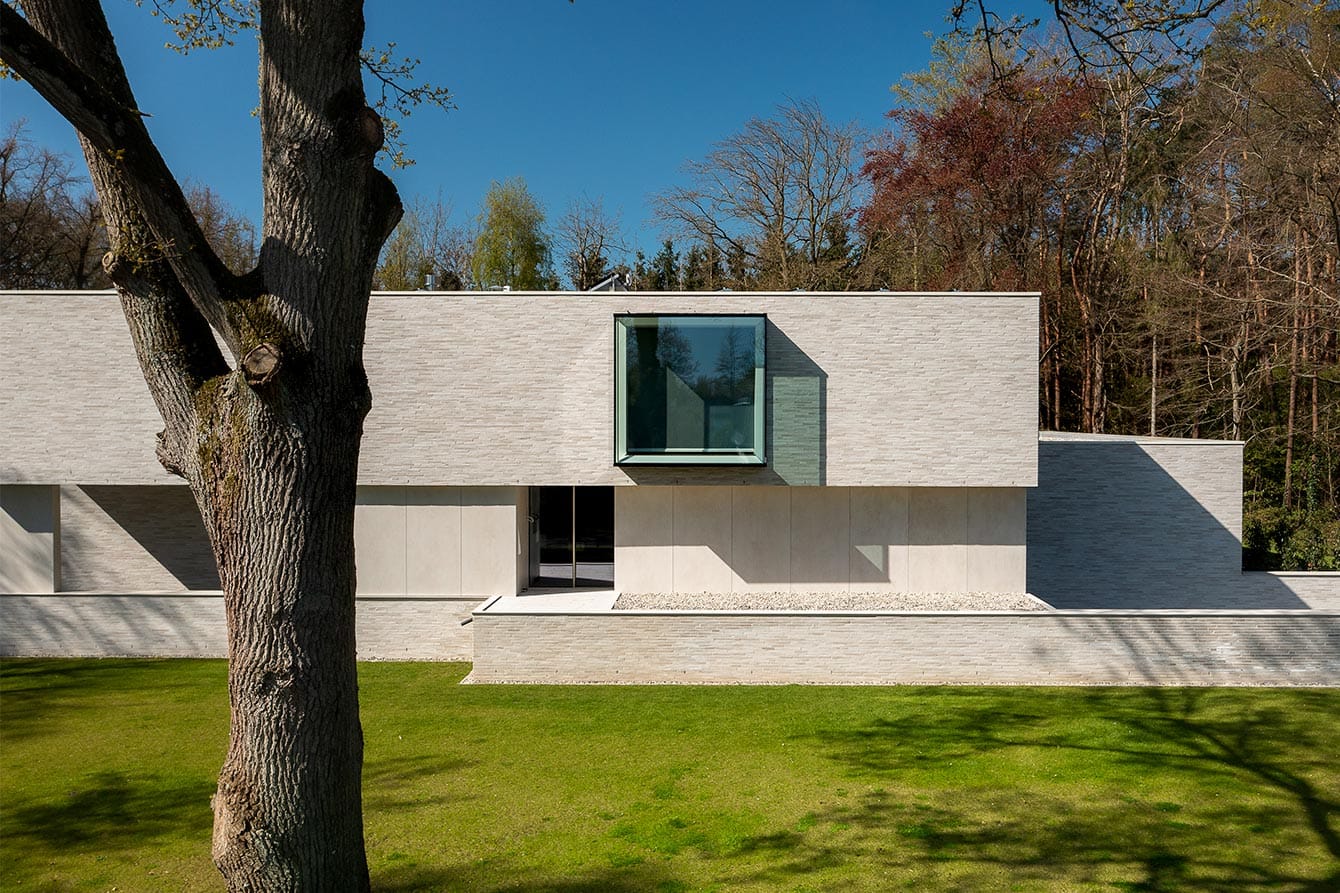 At first sight, the facade of this white gem in Germany may look simple. But no detail is coincidental, and bold choices are the result of an exclusive and extraordinary expression that stands out in the residential area.