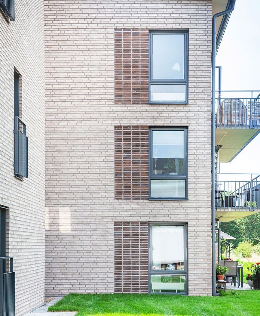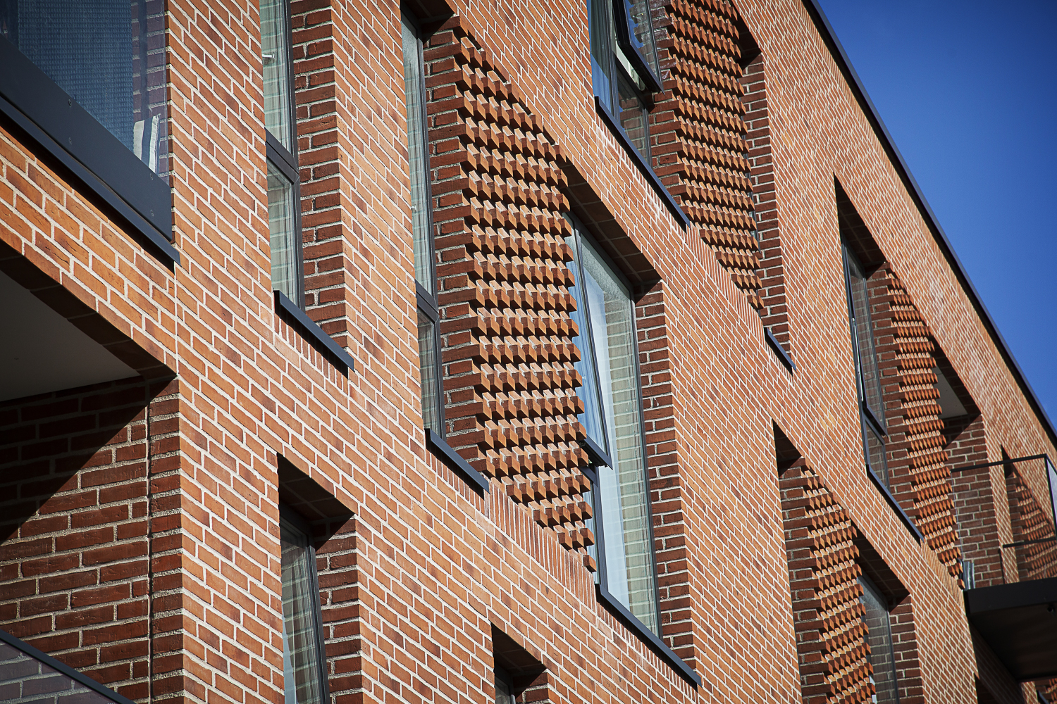 As architects, we wanted each house to have its own design idea and identity. We really wanted to use the brick design. The expression for this was that we drew in and used reliefs, as well as elaborated windowsills and brick decorations. We used molded bricks to get rounded windowsills and we actually worked exclusively with Randers Tegl's standard range, but in slightly different ways to create the buildings' identity and expression.