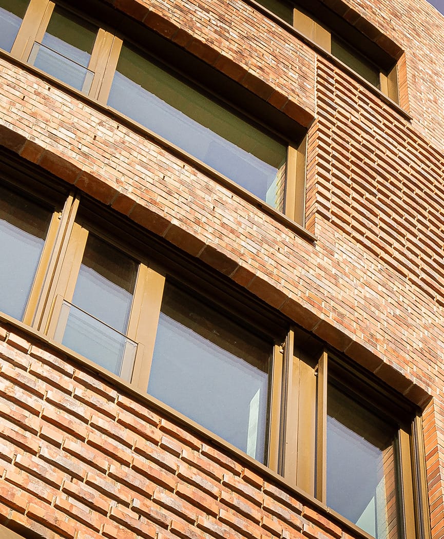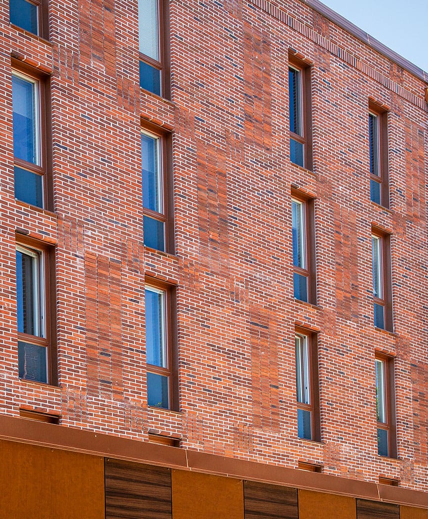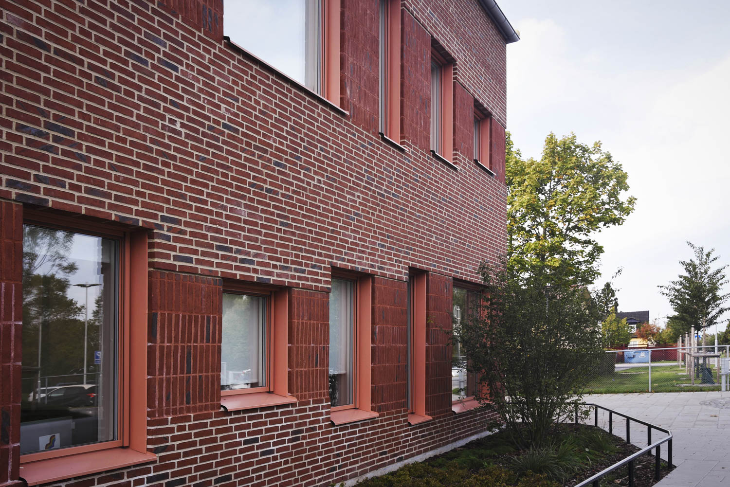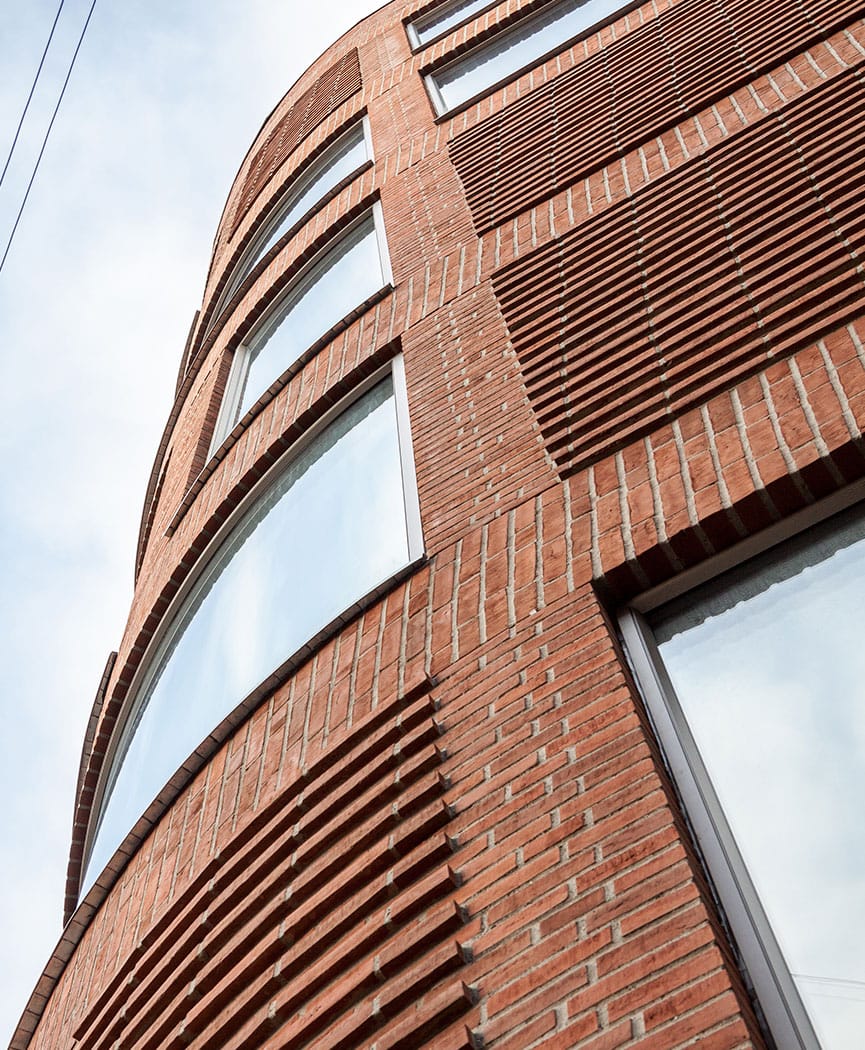 Once an architect has dreamt about a vision, there’s endless possibilities to what brick facades can be. Here the keyword was framing. The bright red colours, the details in the masonry and technical brick lintels solutions show an excellent art of architecture.