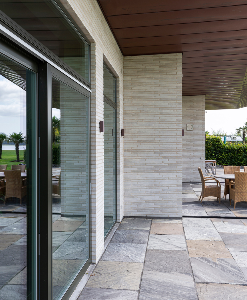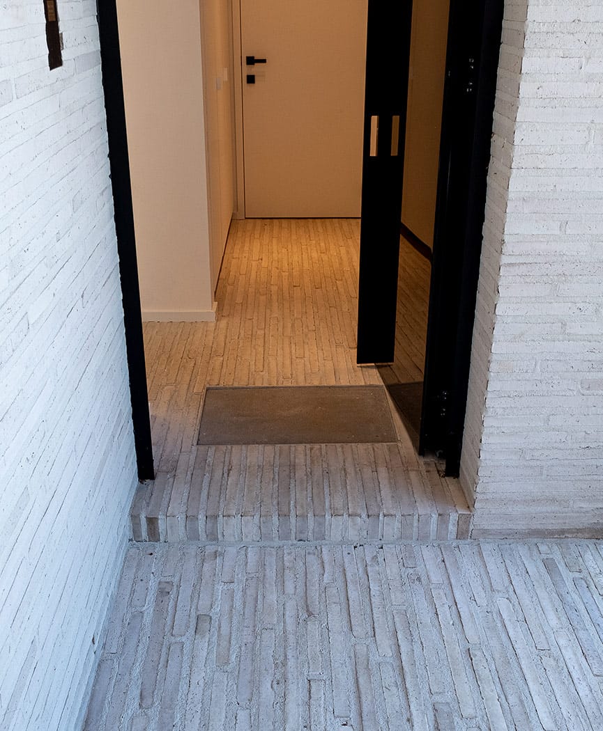 A significant detail in the project is the variation of bonds. A combination of vertical and horizontal bonds offers a special welcome to the home and adds a distinguished expression making the overall impression unique and not to underestimate.