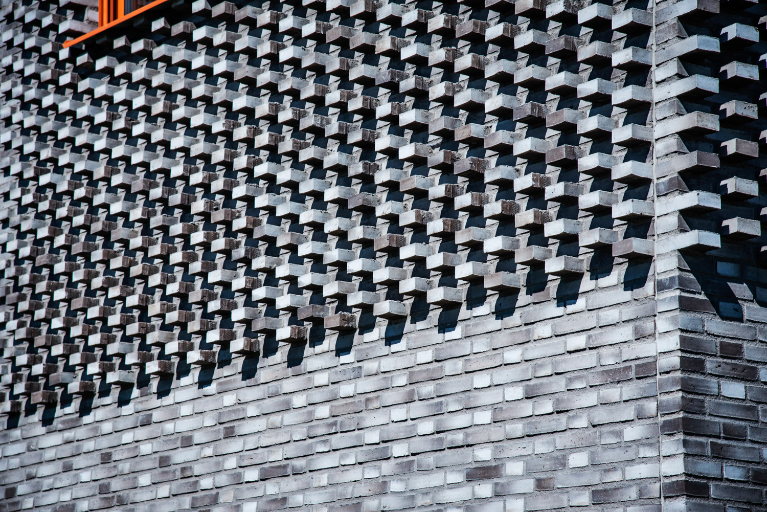 A giant curve characterizes this modern office building in Drengsrudbekken, Norway. Standing on columns the building’s masonry has an abundance of detail for a building of its size. Using different mortar colors creates a distinctive expression in collaboration with the bricks’ grey tones.