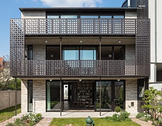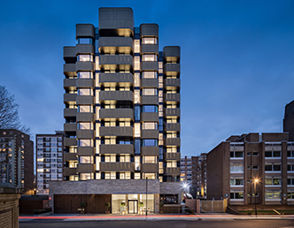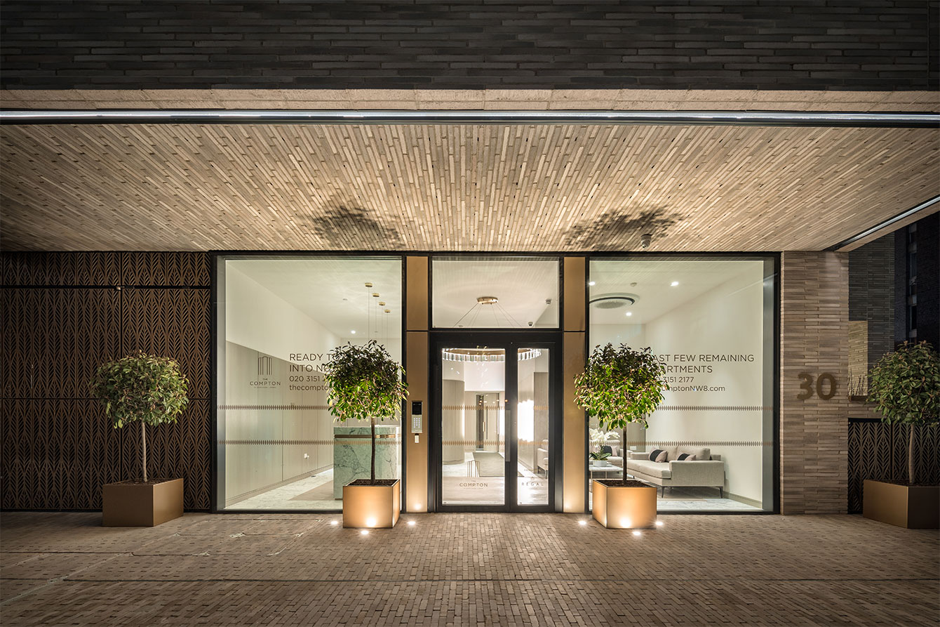 The Compton Residence is a ten-store residential building in a London suburb. The project is strongly influenced by Art Deco-style, and its soft curves, geometric patterns and an amazing façade of cast aluminium come together to create a prestigious feel.