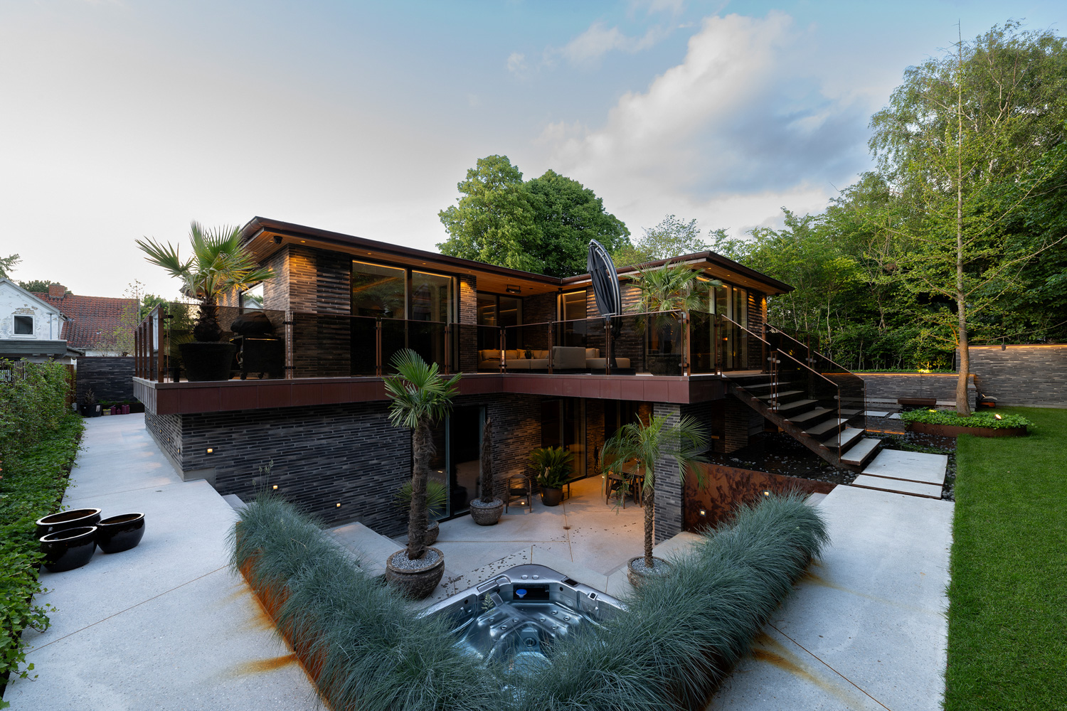 This Belgian juvel is a myriad of open courtyards with breathtaking facades. The muted brick colors combined with a changeable surface creates a distinctive expression from this Villa in Antwerp, Belgium.