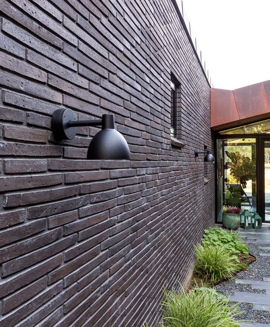 A consistent element in the project is the RT 550 Kronos brick. It is a soft-moulded brick in shades of dim grey with a pinch of warm yellow. It picks up the surrounding’s play of colours and adds robustness to the house. The brickwork is also an important element in the indoor environment, where it sets the scene for a comfortable feeling of home..