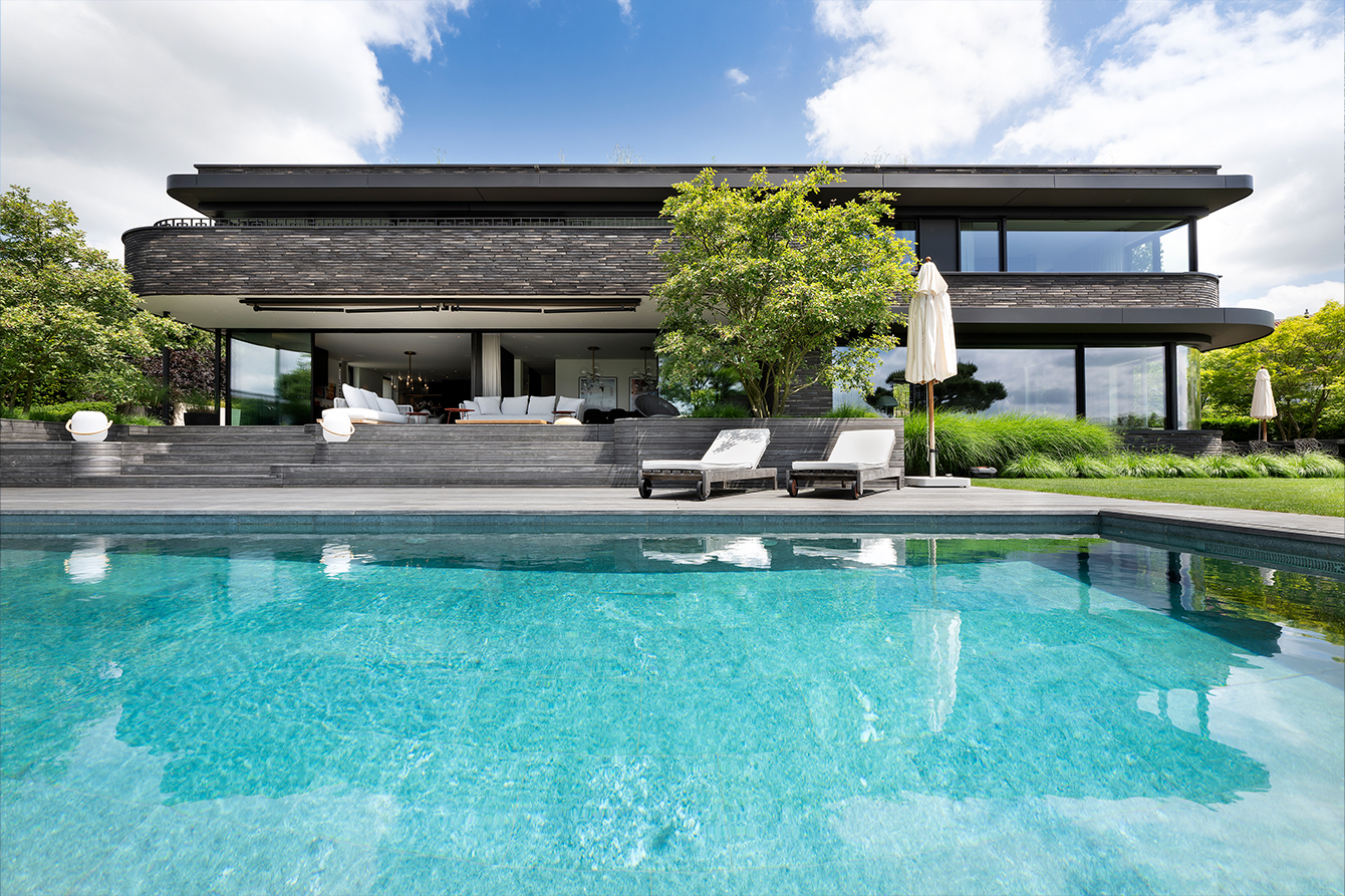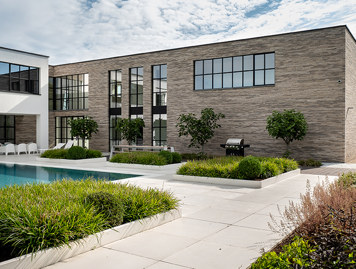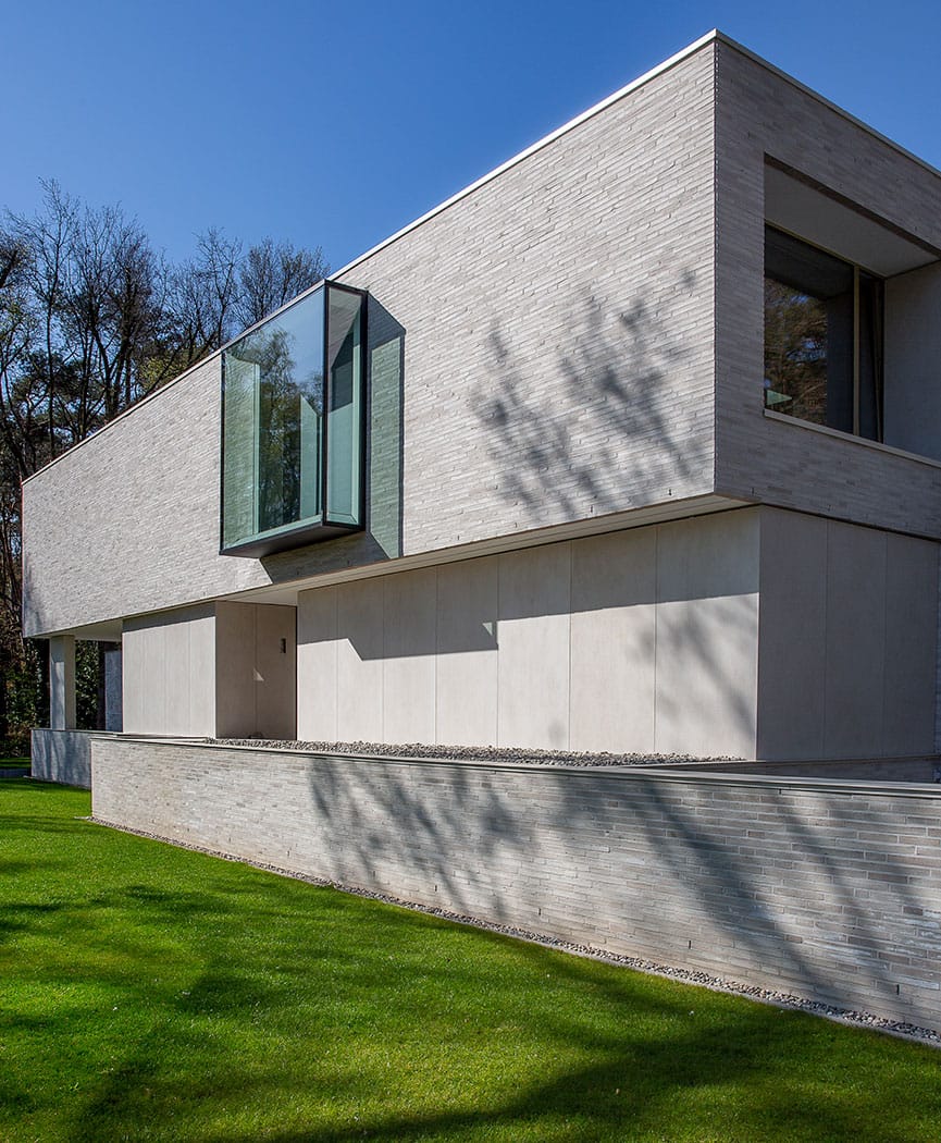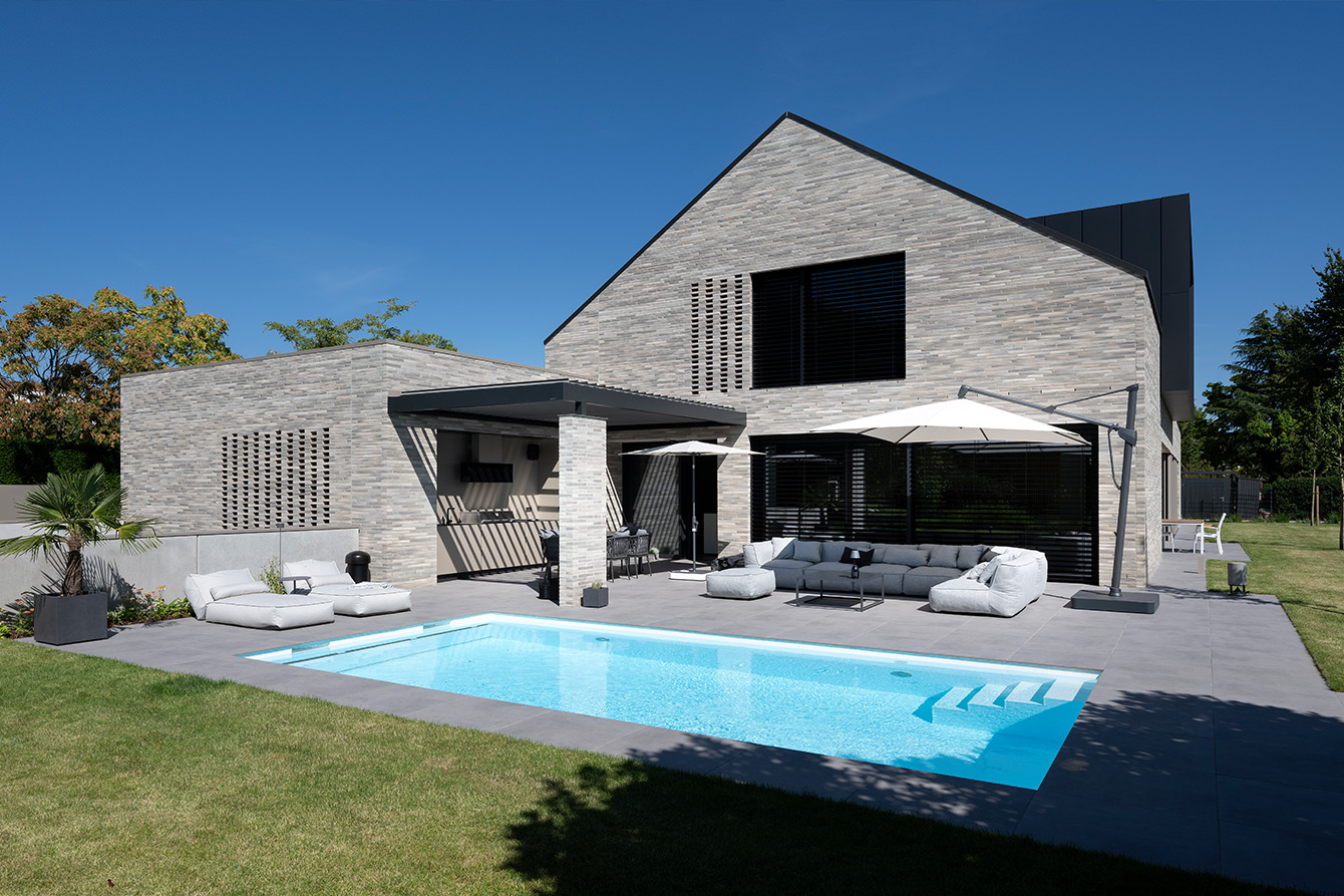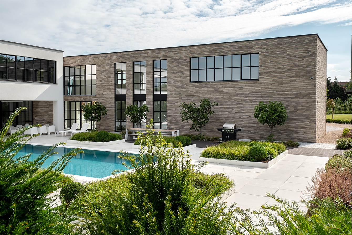 Minimalistic elegance meets contrasting combinations in this breathtaking home in Holland. In a symphony of grey nuances, the extra-long Ultima-bricks extend the voluminous villa, while the many large windows make for the perfect view of the green surroundings that embrace the exclusive and extraordinary Villa Oss.