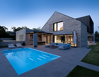 Secluded completely from the outside, this tempting poolside has the perfect waterstruck backdrop with Ultima’s raw and coarse touch. Ultima RT 153 with a retracted mortar really gives the long format the limelight on this exclusive private residence.