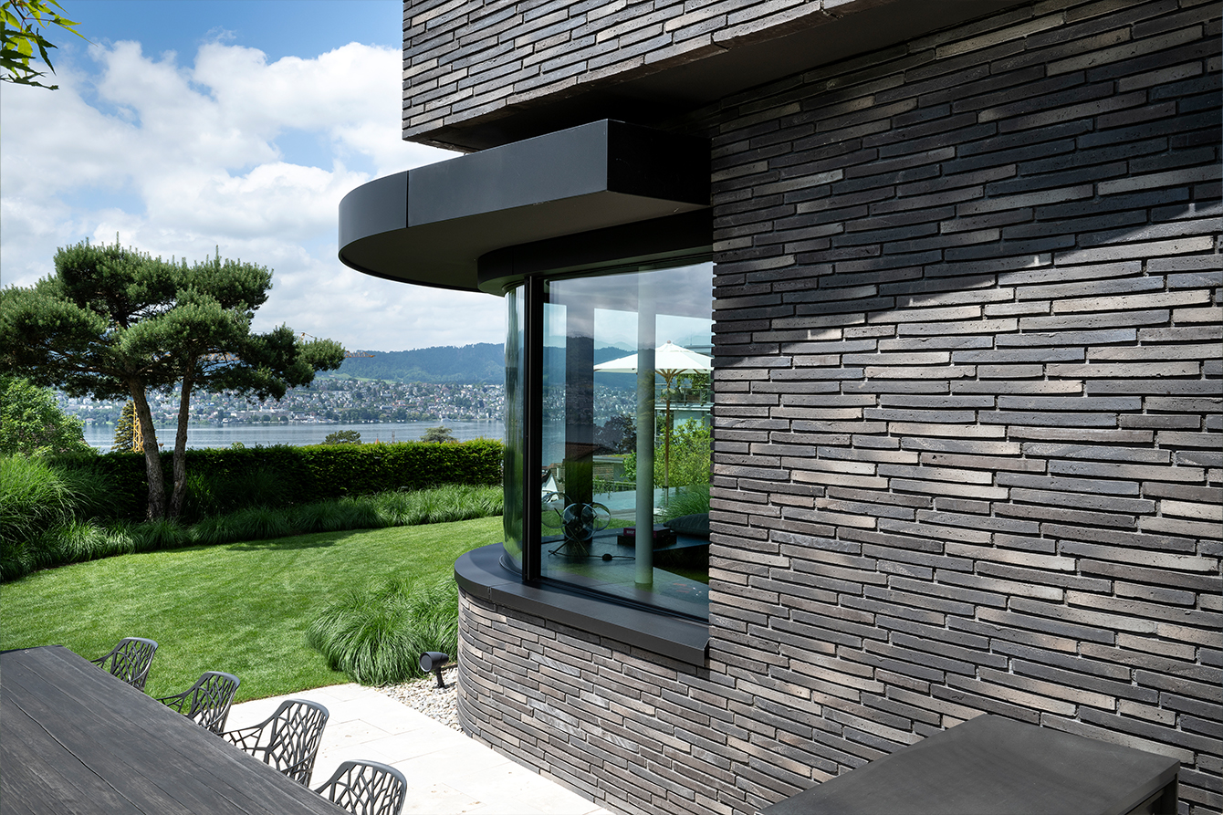 Villa O. er et fremragende eksempel på en premiumejendom, hvor kombinationen af elegante kurver med specialfremstillede mursten fra vores Carlsberg Bjælker-fabrik og gennemsigtige facader skaber et utroligt helhedsindtryk. Designet af arkitektfirmaet Hünerwadel Albers & Partner byder ejendommen ikke kun på en fantastisk udsigt over det unikke landskab, men har også områder beklædt med ULTIMA i stuen, vinkælderen og indgangspartiet.