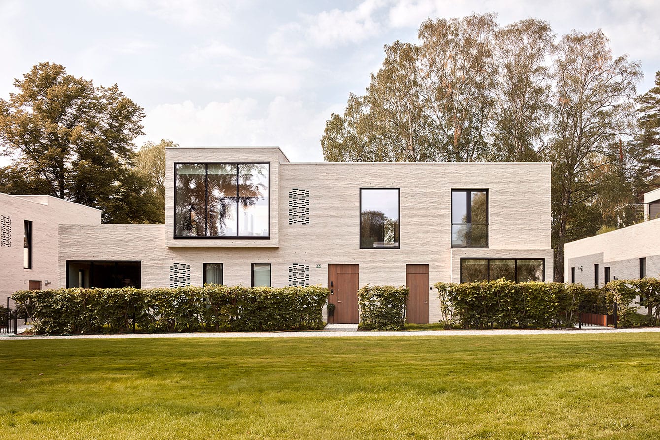 These exclusive Norwegian apartments resides beautifully in a 16-acre English-style park, that gives the Bygdøy-area its attractive feel. Ultima Full White and tinted brick mortar give the facades a calm and homogeneous feel.