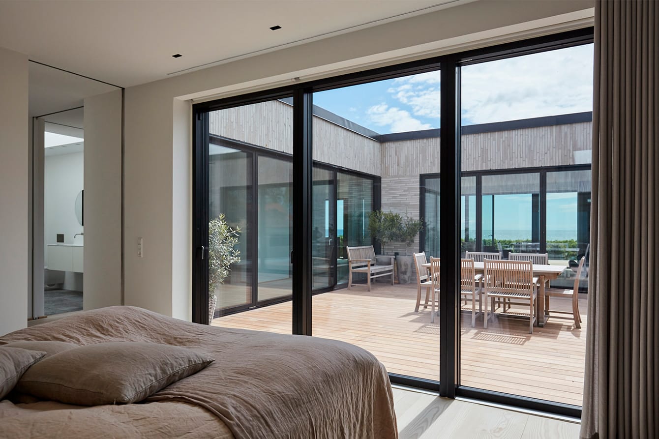 North of the charming Danish city Aarhus, a unique villa overlooks the bay. This contemporary gem is oriented towards the sea, not only in its location – but in every architectural decision.