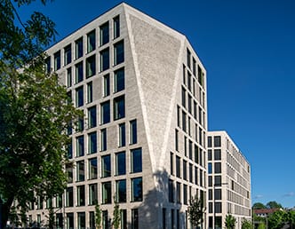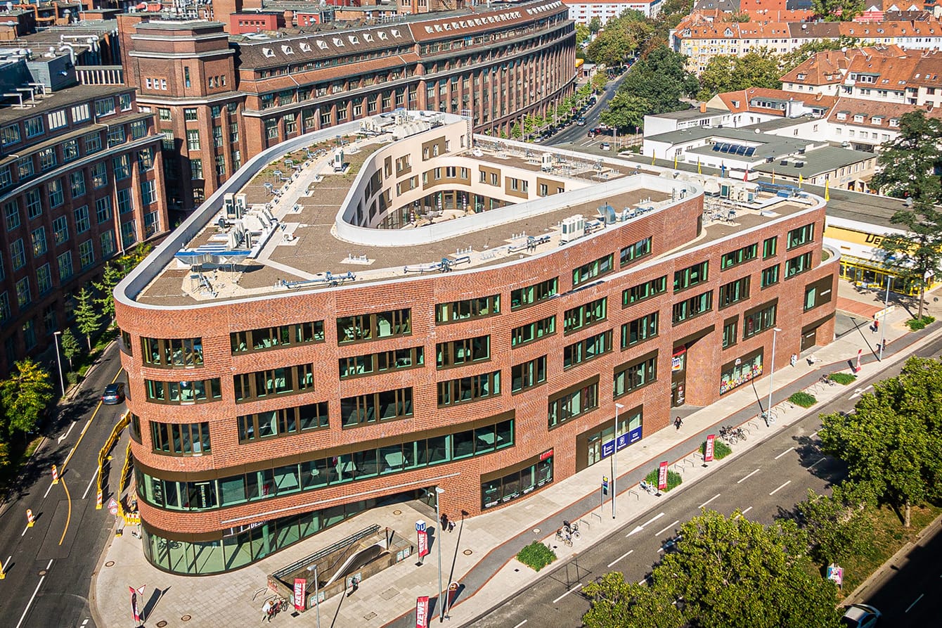 This grey and white-scaled office building is not just an elegant piece in the townscape of Hannover. It is also DGNB gold-certified due to its sustainable qualities.