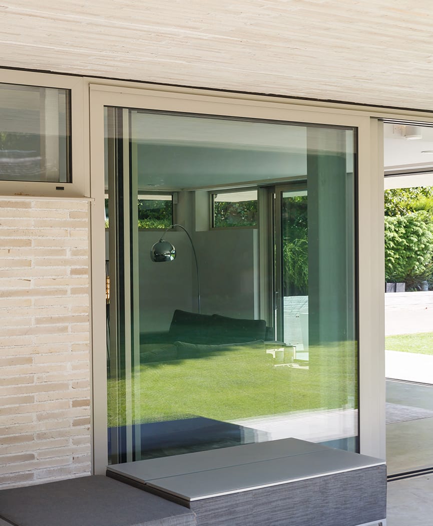 The format is dimensional which adds depth to the overall impression. The bonding is characteristic, while large sections of windows in different formats, vertical and horizontal, unite indoors and outdoors.