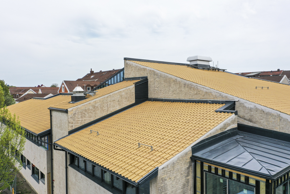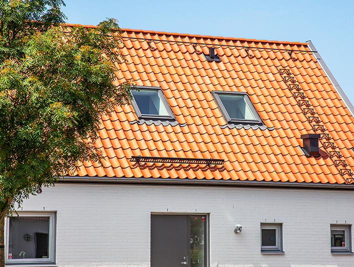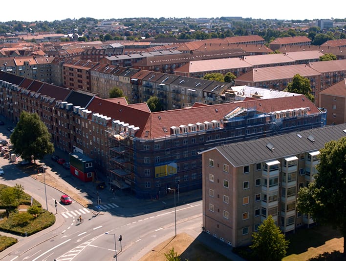 At the corner of Øgadekvarteret in Aalborg, this property in Bornholmsgade got a big-scale make-over in accordance with Danish building traditions. 34 new dormers adorn this beautiful tiled red roof ridge made in the Danish roofing classic: Højslev's wing roof in a small Danish format.