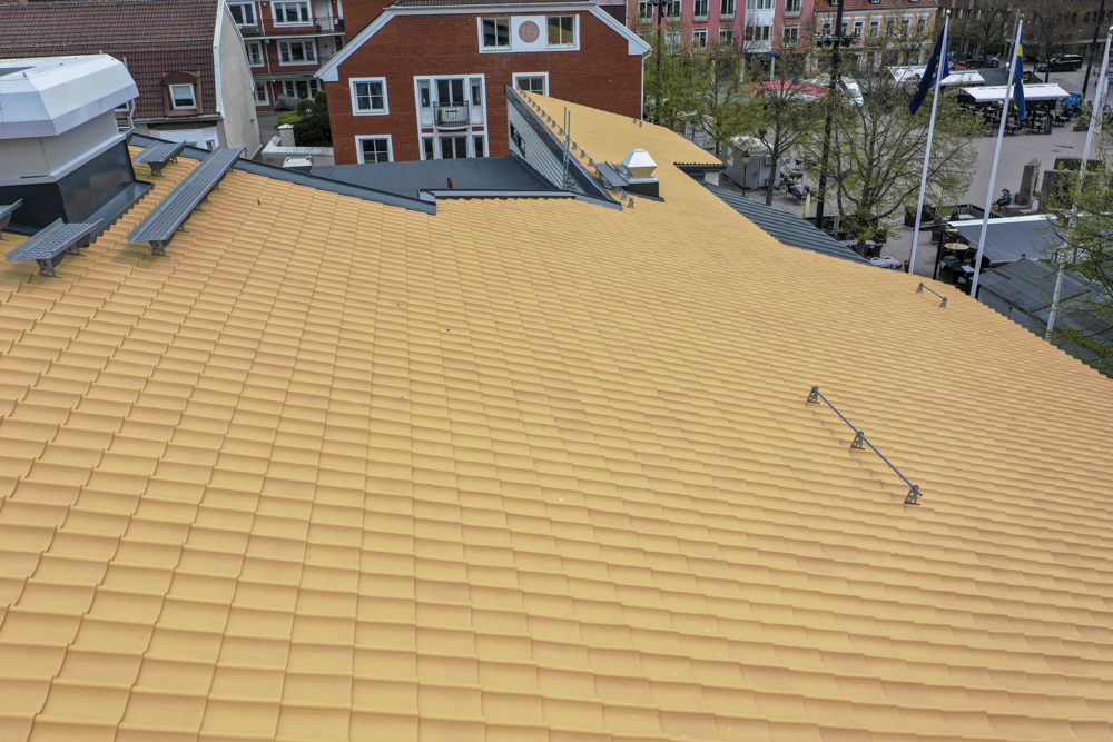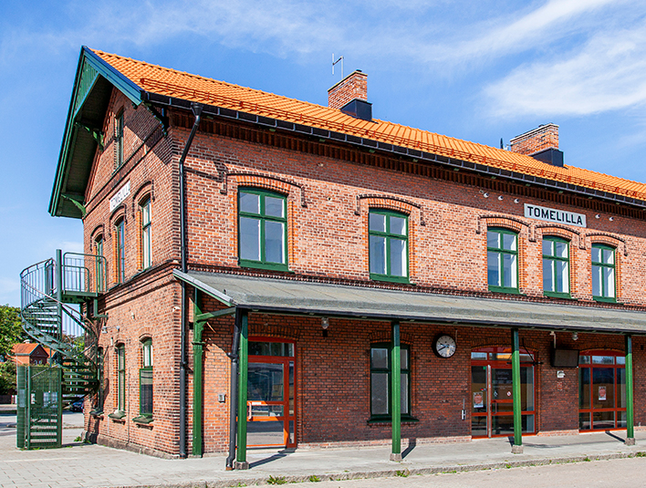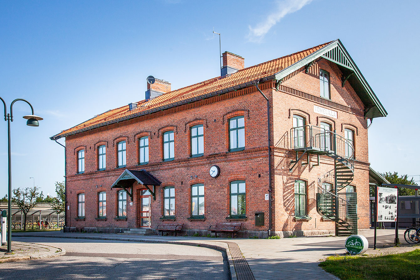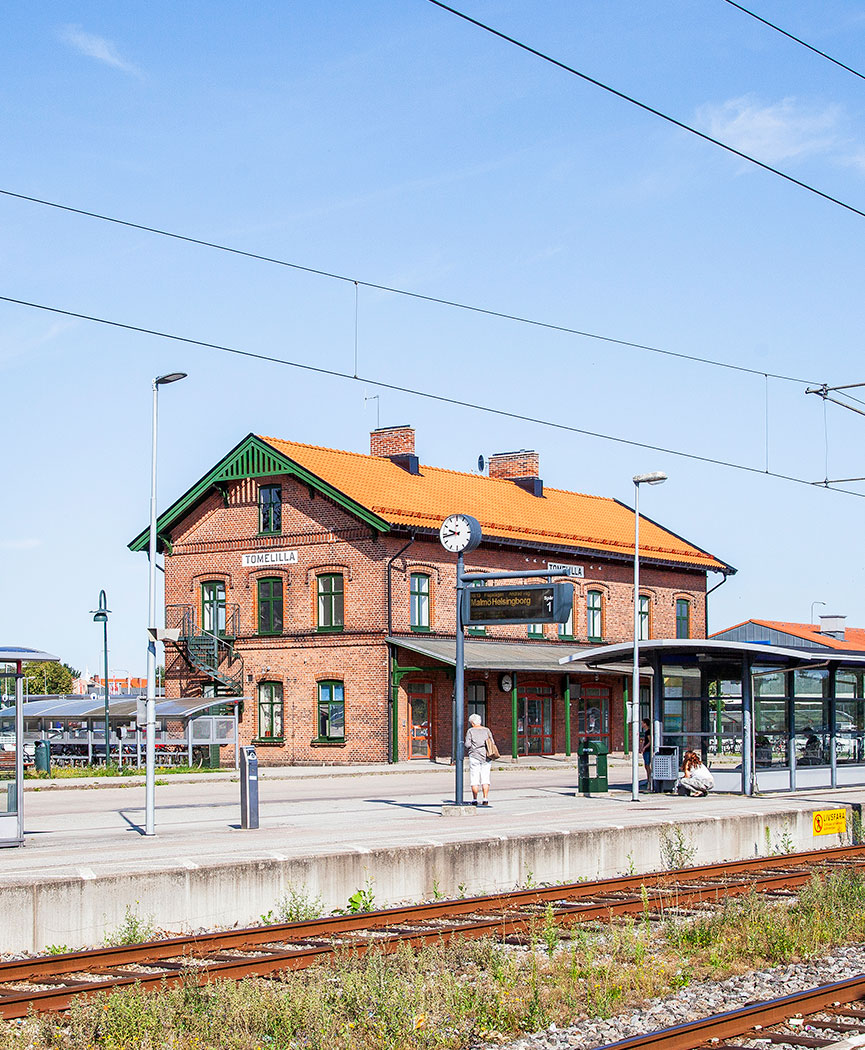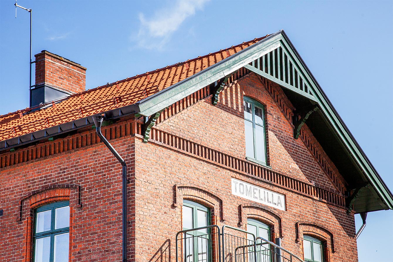 Trains have arrived in Tomelilla in the past 150 years. Now this old brick station house has got a new beautiful roof, that matches the classical style of train station houses throughout Sweden.