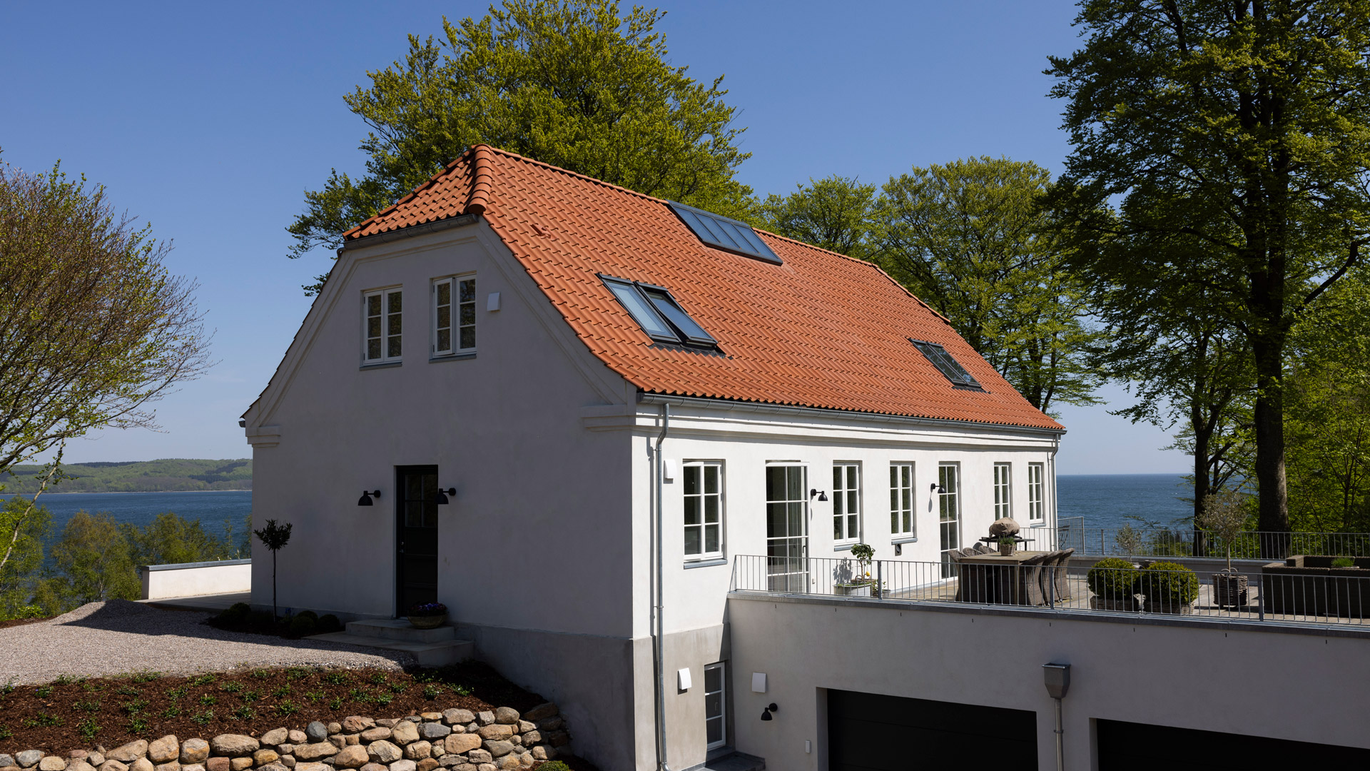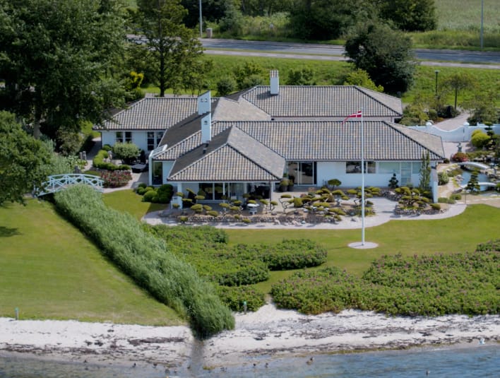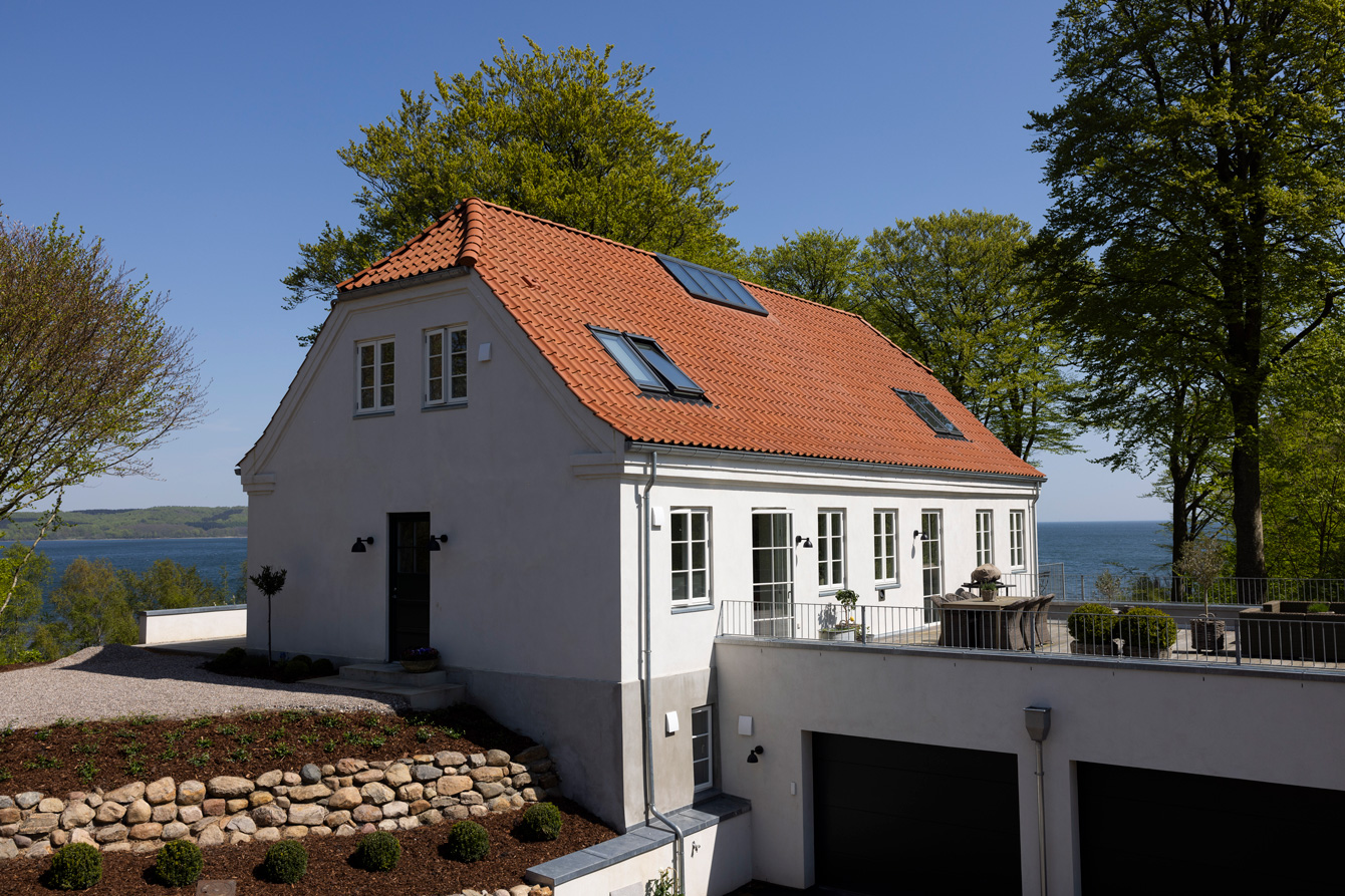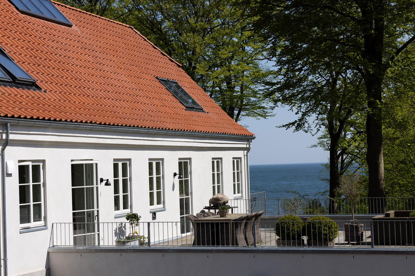 A beautiful Funen beach side mansion has been given a detailed makeover with blue-damped wing roof tiles. Blessed with a Japanese-inspired garden the house overlooks one of the most beautiful straits in Denmark.