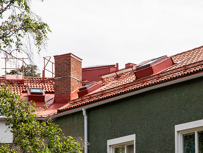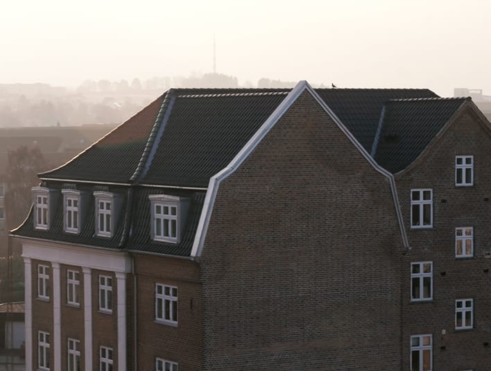 A stone's throw from the fjord of Aalborg is a group of large apartments situated with great views. The building has been renovated with the RT 840 silk-matte roof tiles to match the existing design and preserve the building’s classic appearance.