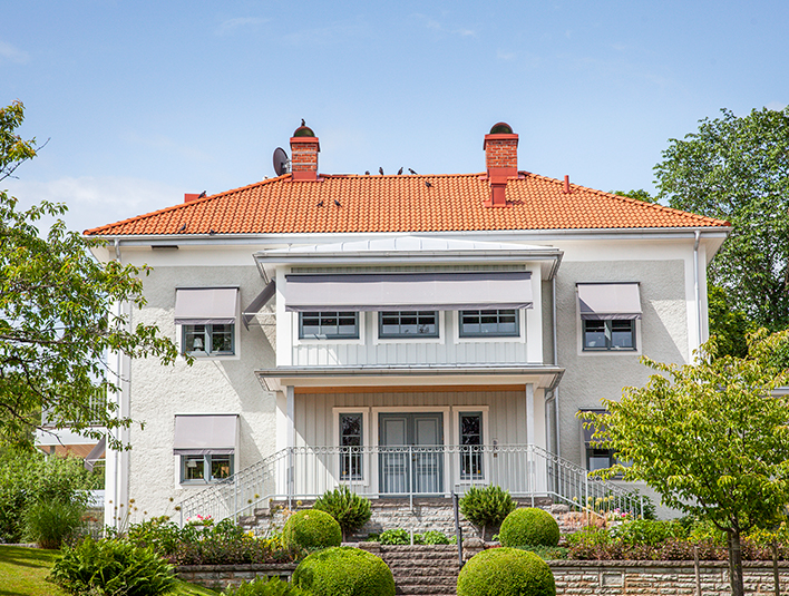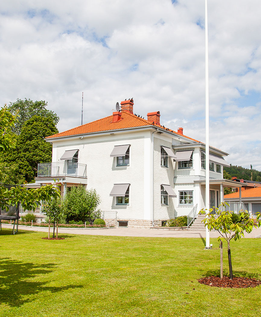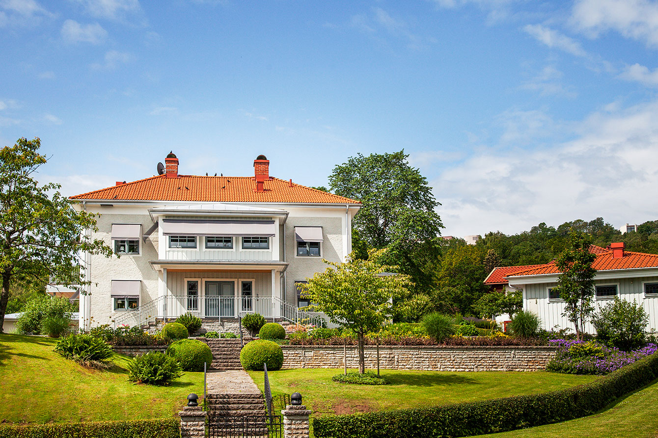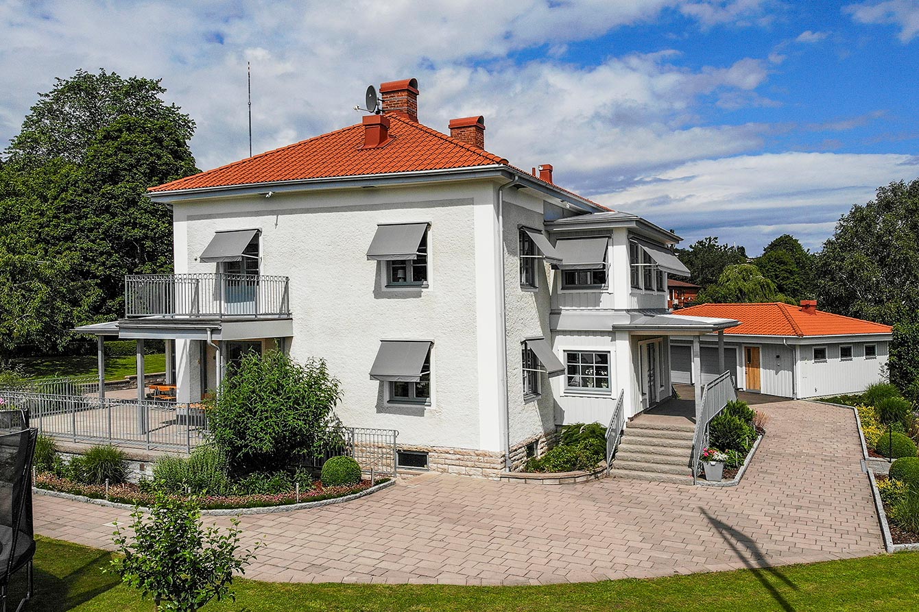 A grand residence in its magnificence with a well-held and beautiful surrounding garden. Blessed with many square meters this house sits majestic in the landscape. Of course, topped with a classic red tile roof.