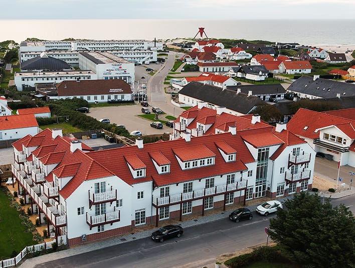 With only a few hundred meters to the wide, white sandy beaches and the west coast, and located in Northern Jutland in one of Denmark's most beautiful and best holiday areas, Strandhotellet Blokhus is an obvious choice as a bath hotel for romantic souls. The hotel was newly built in 2017 with respect to the Danish classic bath hotel traditions and decorated with tall wooden panels, light rooms and beautiful wallpaper. No detail has been spared, and you can tell by the exterior that the building’s level of detail and architecture creates references back in time.