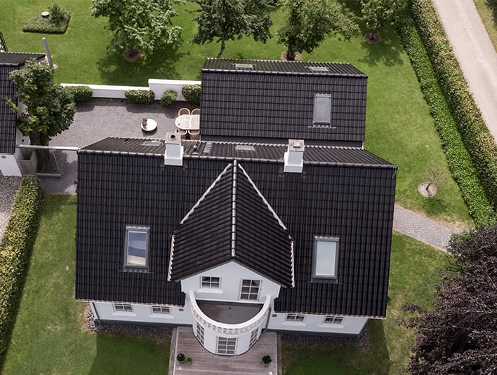 This unique location at Kolding Fjord calls for a very special house – and for a roof with character and flare. This completely renovated white mason with private pier and stunning views has been refurbished with glazed Laumans roof tiles. The roof is not only a good match for the house and its surroundings. The extra thick glaze, which creates the matte look, also provides a sturdy roof that is completely algae and dirt repellent and extravagantly looking.